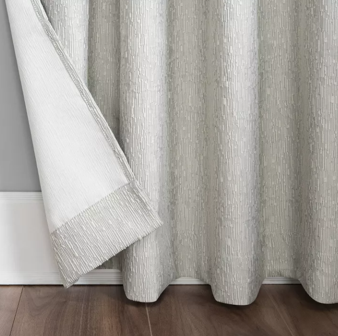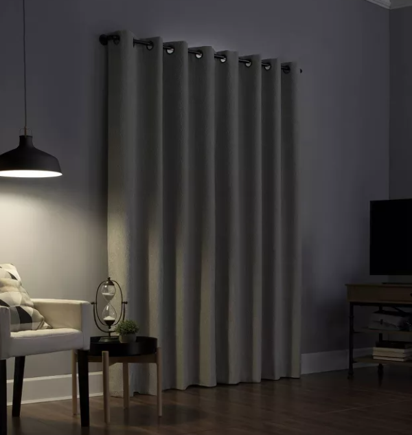 Highlights Multi-dimensional woven pattern exudes modern art Extreme Thermal Blackout technology blocks out 100% of outside light Thermal properties help keep summer heat and winter chill out of your home Noise reduction by up to 40% helps you get a sounder, more uninterrupted sleep Built-in metal grommets fit curtain rods up to 1.5" in diameter Panels sold individually. Measure carefully prior to purchase. (Image features 2 panels) Description Featuring an artistic multi-dimensional woven pattern, Sun Zero Noir Curtain Panels add intrigue to any living space. Equipped with built-in metal grommets for easy hanging on standard curtain rods up to 1.5" in diameter. Sun Zero Extreme Blackout™ Thermal Lining is laboratory tested to block out 100% of light, reduce outside noise by up to 40%, and decrease energy lost through your windows by up to 40%. Comfort is optimized with thermal properties that help keep summer heat and winter chill out of your home. Hang in your entertainment room to eliminate screen glare and reduce distracting outside noise, or in your bedroom for enhanced privacy and a sounder, more uninterrupted sleep. Sold as individual panels. Measure carefully before selecting your desired size and quantity. Rod not included. Machine wash cold on gentle cycle. Use non-chlorine bleach when needed. Tumble dry on low heat, using a cool iron as needed. We will be happy to answer any questions or provide more information, just click "ask a question" at the bottom of the page. Thanks! Sun Zero Noir Dimensional Thermal Extreme Blackout Grommet Curtain Panel 52 x 96 Sun Zero Noir Dimensional Thermal Extreme Blackout Grommet Curtain Panel 52 x 96 Click images to enlarge Description Highlights Multi-dimensional woven pattern exudes modern art Extreme Thermal Blackout technology blocks out 100% of outside light Thermal properties help keep summer heat and winter chill out of your home Noise reduction by up to 40% helps you get a sounder, more uninterrupted sleep Built-in metal grommets fit curtain rods up to 1.5" in diameter Panels sold individually. Measure carefully prior to purchase. (Image features 2 panels) Description Featuring an artistic multi-dimensional woven pattern, Sun Zero Noir Curtain Panels add intrigue to any living space. Equipped with built-in metal grommets for easy hanging on standard curtain rods up to 1.5" in diameter. Sun Zero Extreme Blackout™ Thermal Lining is laboratory tested to block out 100% of light, reduce outside noise by up to 40%, and decrease energy lost through your windows by up to 40%. Comfort is optimized with thermal properties that help keep summer heat and winter chill out of your home. Hang in your entertainment room to eliminate screen glare and reduce distracting outside noise, or in your bedroom for enhanced privacy and a sounder, more uninterrupted sleep. Sold as individual panels. Measure carefully before selecting your desired size and quantity. Rod not included. Machine wash cold on gentle cycle. Use non-chlorine bleach when needed. Tumble dry on low heat, using a cool iron as needed. We will be happy to answer any questions or provide more information, just click "ask a question" at the bottom of the page. Thanks! Images sell! Get Supersized Images & Free Image Hosting Create your brand with Auctiva's Customizable Templates. Attention Sellers - Get Templates Image Hosting, Scheduling at Auctiva.com. Track Page Views With Auctiva's Counter