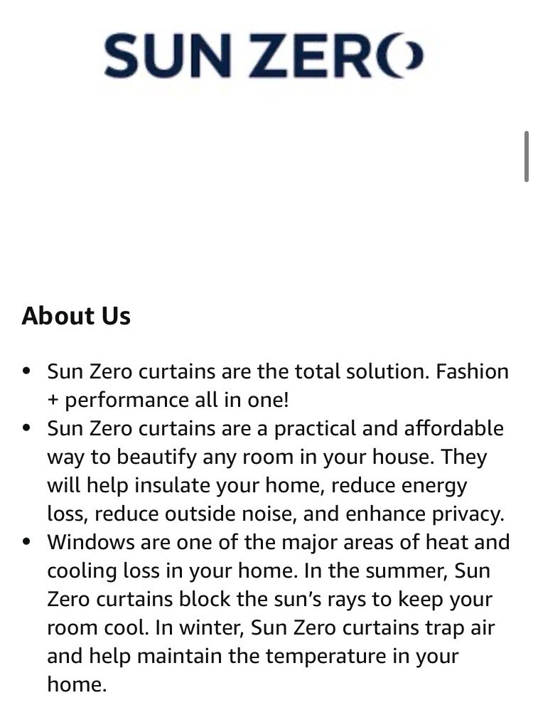 About Us Sun Zero curtains are the total solution. Fashion + performance all in one! Sun Zero curtains are a practical and affordable way to beautify any room in your house. They will help insulate your home, reduce energy loss, reduce outside noise, and enhance privacy. Windows are one of the major areas of heat and cooling loss in your home. In the summer, Sun Zero curtains block the sun’s rays to keep your room cool. In winter, Sun Zero curtains trap air and help maintain the temperature in your home. Brand Sun Zero Color Teal Material Polyester Product Dimensions 63”L x 52"W Opacity Blackout Special Feature Blackout Polyester Item Package Dimension: 12L x 8.5W x 6.1H inches Item Package Weight - 1.6 Pounds Item Package Quantity - 1 Product Type - CURTAIN Style Color Teal Opacity Blackout Room Type Bedroom Materials & Care Material Type Polyester Product Care Instructions Machine Wash Lining Description Polyester Measurements Item Dimensions L x W 96"L x 52"W Size 52"W x 96"L (Pack of 1) Item Weight 5.7 Pounds Features & Specs Additional Features Blackout Closure Type Grommet Fits Rod Size 1.6 Inches