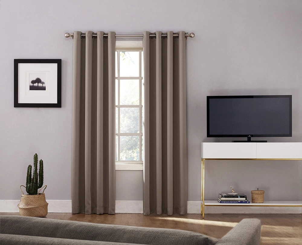 Sun Zero Nordic 2-Pack Theater Grade Noise Reducing Extreme 100% Blackout Grommet Curtain Panel Pair, 52" x 84, Mushroom Brown Extreme Blackout technology blocks out 100% of outside light Energy Efficient design reduces energy lost through your windows by up to 50% Thermal properties help keep summer heat and winter chill out of your home Noise reduction by up to 45% helps you get a sounder, more uninterrupted sleep Includes 2 grommet curtain panel made from machine washable material Pair includes 2 panels Shipping We offer FREE shipping on all orders! We ship within Three business days of payment, usually sooner. We use a selection of shipping services such as UPS, FedEx, USPS etc. We only ship to the lower 48 states, no APO/FPO addresses or PO Boxes allowed. Local pickups and combined shipping options are not provided at this time. Return You can return a product for up to 30 days from the date you purchased it. Any product you return must be in the same condition you received it and in the original packaging. Please keep the receipt. Payment We accept payment by any of the following methods: PayPal Please pay as soon as possible after winning an auction, as that will allow us to post your item to you sooner! Feedback Customer satisfaction is very important to us. If you have any problem with your order, please contact us and we will do our best to make you satisfied. Contact Us If you have any queries, please contact us via ebay. We usually respond within 24 hours on weekdays. Please visit our eBay store to check out other items for sale! Thank you for shopping at our store.