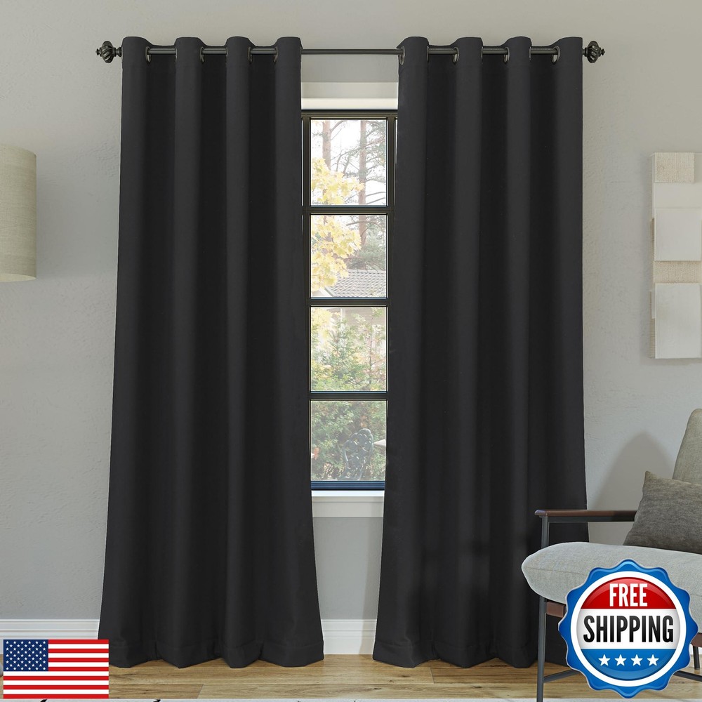 Sun Zero Nordic 2-Pack Theater Grade Noise Reducing Extreme 100% Blackout Grommet Curtain Panel Pair, 52" x 54, Coal Gray Features Extreme Blackout technology blocks out 100% of outside light Energy Efficient design reduces energy lost through your windows by up to 50% Thermal properties help keep summer heat and winter chill out of your home Noise reduction by up to 45% helps you get a sounder, more uninterrupted sleep Includes 2 grommet curtain panel made from machine washable material Pair includes 2 panels Shipping Free & Fast Shipping: We offer free shipping to most of the USA with a normal delivery time of 3-7 days. However, due to the current situation, additional delivery time (up to 3 weeks) may be required for some items. Alternative Carriers: We may use alternative carriers (e.g., USPS, FedEx, UPS) to ensure your package arrives safely and on time. Due to the use of multiple carriers, we are unable to provide a tracking number automatically. Handling Time: Orders are processed and shipped within 1-2 business days of receiving cleared payment. Shipping Restrictions: Shipping to Alaska, Hawaii, Puerto Rico, Guam, and other US territories may incur shipping charges or delivery restrictions. Please contact us before ordering, or your order can be refunded/cancelled. State Restrictions: Certain items may not be shipped to California due to state regulations. Contact for Tracking Updates: If you require tracking updates or have any concerns about the delivery of your order, please feel free to contact us, and we will be happy to assist you. Return Policy 30-Day Hassle-Free Returns: If you are not completely satisfied with your purchase, you can return the item for free within 30 days of receiving it for a full refund or exchange. Easy Return Process: Contact us, and we will provide you with a prepaid return shipping label and detailed instructions. No Restocking Fee: There are no restocking fees for returns. However, the buyer is responsible for return shipping costs if the return is not due to a seller's error. Refund Processing: Refunds will be processed within 1 business day of receiving the returned item in its original condition. Payment We accept all major credit cards, PayPal, and Apple Pay for your convenience. Your payment information is secure and encrypted to ensure a safe and seamless transaction. Please complete your payment within 3 days of purchase to avoid any delays in shipping. Feedback Your feedback is extremely important to us. We strive to provide the best products and customer service possible. If you are satisfied with your purchase, please take a moment to leave us a positive review. If you have any concerns or issues with your order, please contact us before leaving negative feedback. We are committed to resolving any problems and ensuring your satisfaction. Contact Us If you have any questions or concerns, please feel free to reach out to our customer support team. You can contact us through the eBay messaging system. We are available Monday to Friday, 9:00 am to 5:00 pm EST, and we will do our best to respond to your inquiry within 24 hours. Thank you for supporting our small family business!