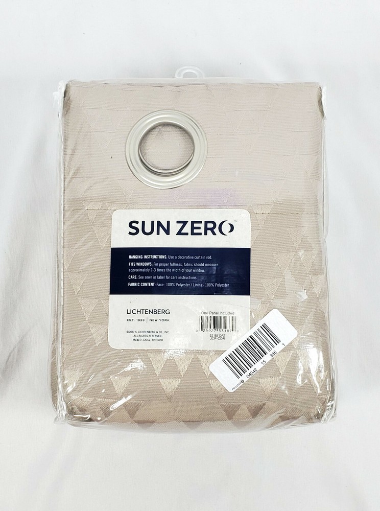 Sun Zero Oatmeal Beige Triangle Pattern Corinne Grommet Curtain Panel. Single curtain panel. Material: 100% Polyester Dimensions: 52" in W x 95" in L fff
