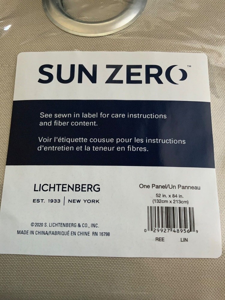 Sun Zero One Panel Curtain Gromet Top 52x84” Lichtenberg Buff Beige....