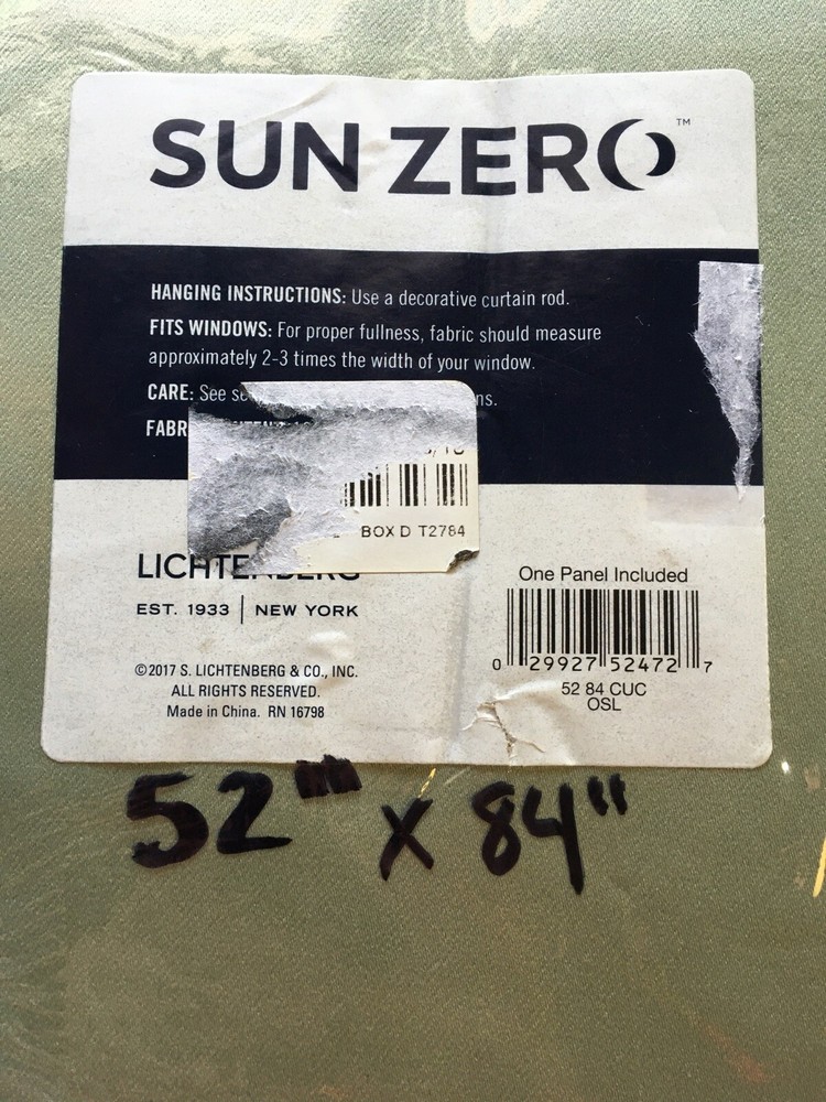 WE DO NOT SHIP TO P.O. BOXES. PLEASE PROVIDE A PHYSICAL MAILING ADDRESS. NEW. NEVER USED. Add style to any room with the Grant room darkening curtains by Sun Zero. Blending style and energy-efficiency, these versatile curtains block outside heat & cold and come in a variety of colors to match any decor. Sold as a single panel. Dimensions: 54" x 84" Includes: 1 curtain panel Polyester Machine washable
