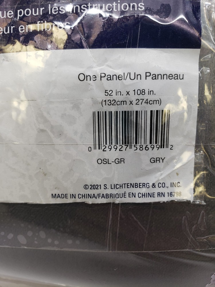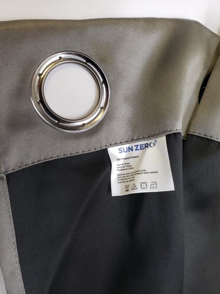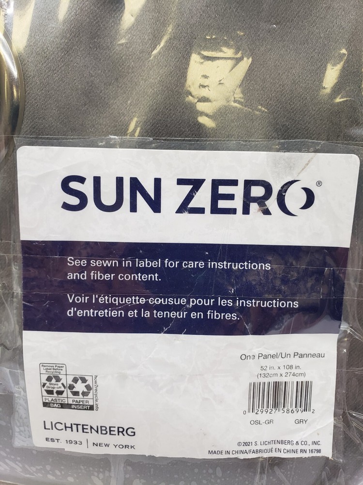 New with out original package. Sun Zero Oslo Theater Grade Blackout Grommet Top Curtain Panel 108" X 52" Gray Only one Dimensions (Overall): 108 Inches (L), 52 Inches (W) Textile Material: 100% Polyester Includes: 1 Curtain Panel Indoor/Outdoor: Indoor Features: Energy Efficient, noise reduction Pattern: Solid Required, Not Included: Rod Textile construction: Plain Weave Hanging style: Grommet Top Light Filtration: Blackout Care & Cleaning: Machine Wash, Iron as Needed, Machine Dry Sold as Pictured