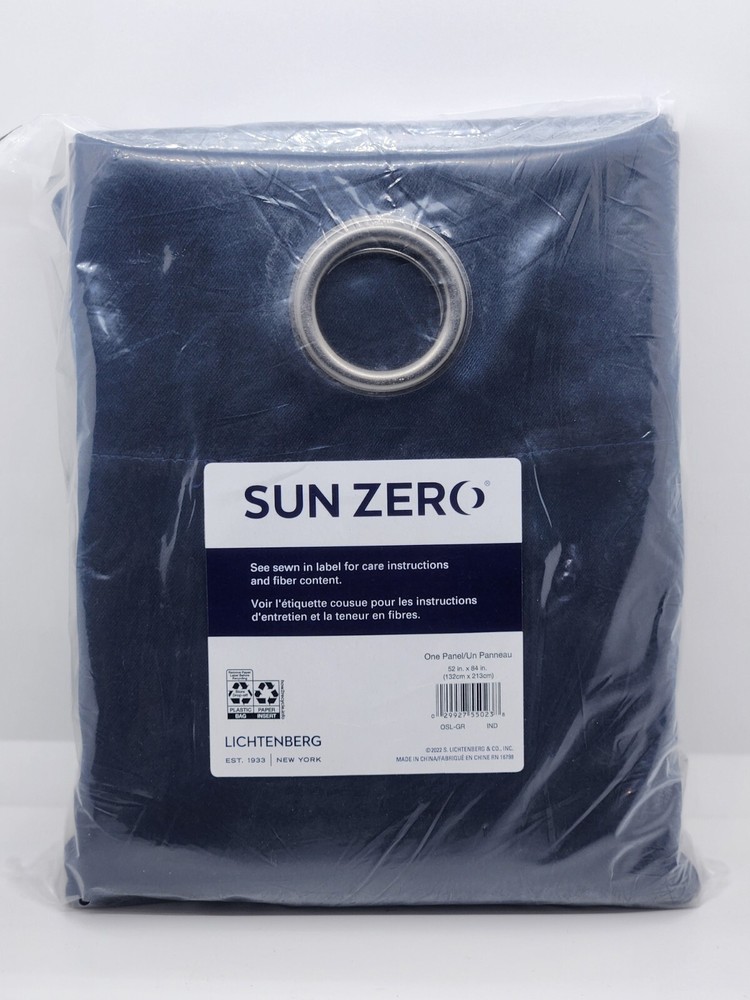 Sun Zero Oslo Theater Grade Extreme Blackout Grommet Curtain Panel 52x84 Indigo. Condition is New. Shipped with USPS Ground Advantage.