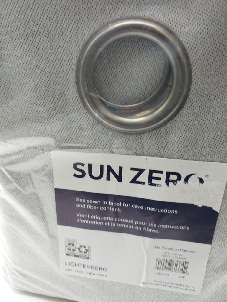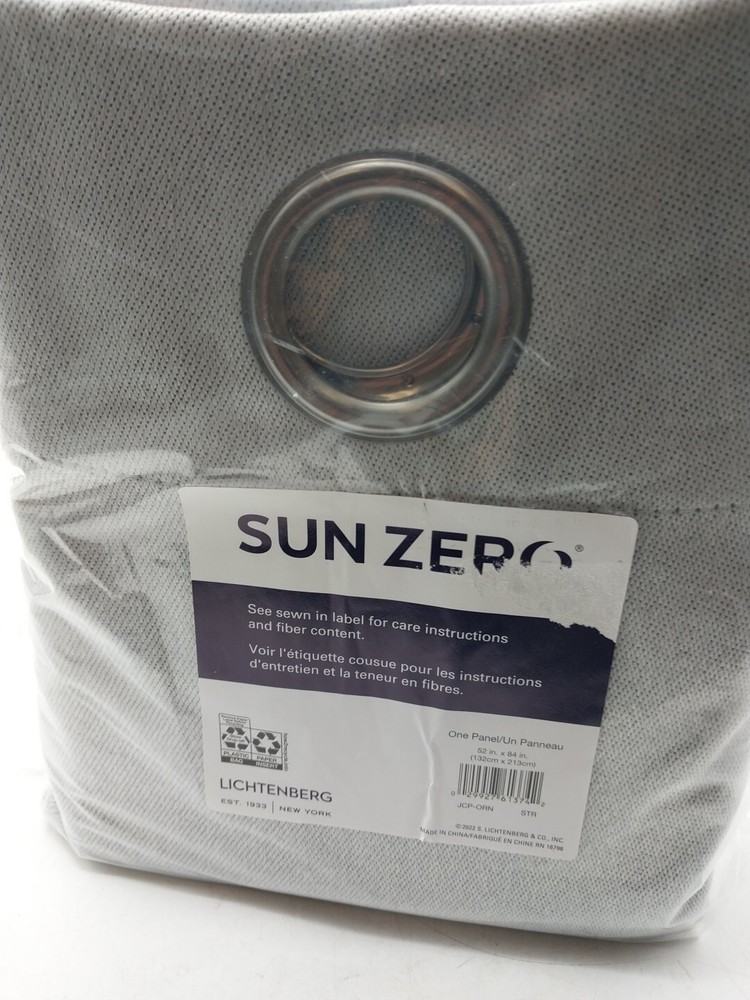 Sun Zero Panel Curtain is a blackout curtain made of polyester material. It comes in a solid gray color and has grommets as the curtain heading. The panel measures 52 inches by 84 inches, making it suitable for any room in the house. The curtain is designed for indoor use and has blackout features, making it ideal for blocking out light and providing privacy.