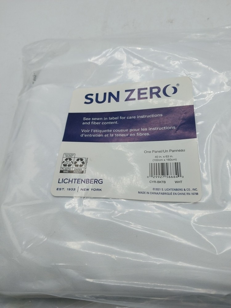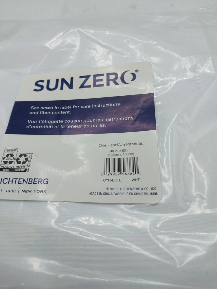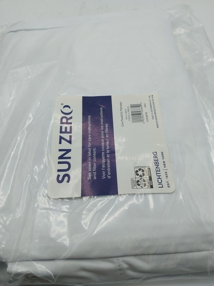 Sun Zero Panel Curtain is a classic style, made of polyester material, and comes in white color. It measures 40 x 63in and is designed to provide blackout transparency. The curtain is suitable for any room and is ideal for indoor use.