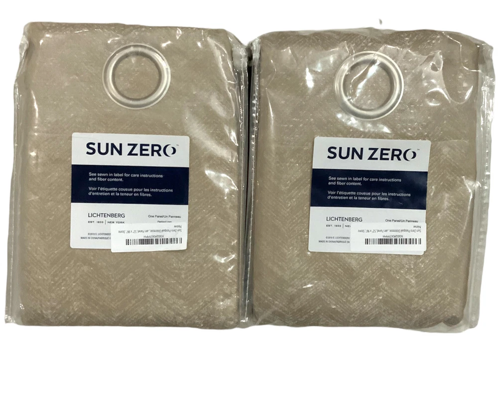 Sun Zero Pasqual 2 Distressed Chevron Thermal Extreme 100% Blackout Grommet Curtain Panels 52 in x 96 in Stone Beige * Tonal chevron pattern with metallic sheen adds a touch of glam * Extreme Thermal Blackout technology blocks out 100% of outside light * Energy Efficient design reduces energy lost through your windows by up to 40% * Thermal properties help keep summer heat and winter chill out of your home * Noise reduction by up to 40% helps you get a sounder, more uninterrupted sleep * Built-in metal grommets fit curtain rods up to 1. 5" in diameter Your purchase will include 2 Panels 52 in x 96 in Stone New Merchandise in unopened Factory Packaging Fast and reliable shipping from our store to your door. SKU#BNKBX16122022 Total Blackout Window Treatment Panels Grommet Stone Noise Reduction NEW
