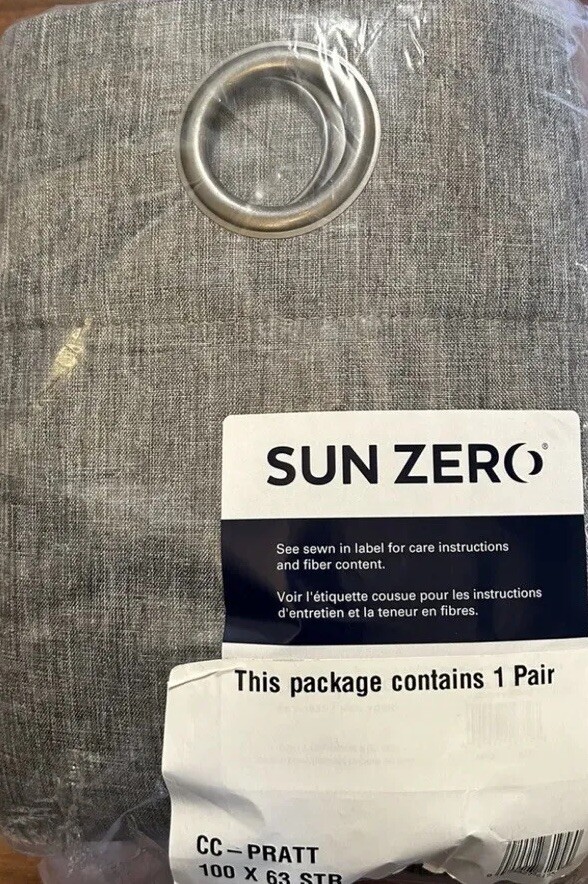 New, open box. *May not have original packaging. 63”L x 50”W each panel. Elevate the style of any room with these Sun Zero Pratt Blackout Curtain Panels in gray color. Fleece insulation, noise reduction, total blackout curtains. Crafted from high-quality polyester, these panels are designed to create a comfortable and private environment.
