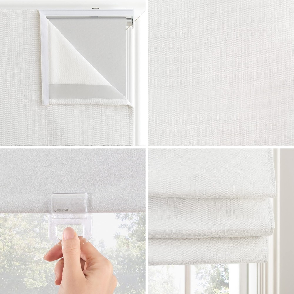 Item Name: Sun Zero Preble Textured Total Blackout Cordless Roman Shade 39" x 64" White Description: With a subtle linen-like textured fabric, Sun Zero Preble Textured 100% Blackout Cordless Roman Shades add sophistication and function to any window in your home. Sun Zero Total Blackout technology is laboratory tested to block out 100% of light, reduce outside noise by up to 50%, and decrease energy lost through your windows by up to 45%. Comfort is optimized with thermal properties that help keep summer heat and winter chill out of your home. Best for Kids Certified cordless design with included handle pull for easy adjustment. Use in your entertainment room to eliminate screen glare and reduce distracting outside noise, or in your bedroom for enhanced privacy and a sounder, more uninterrupted sleep. Mounting hardware included for inside or outside mount as desired. Sold as individual panels measuring 39" width by 64" length in color white. Measure carefully before selecting your desired size and quantity. Rod not included. Gently remove the face fabric from the velcro attachment on the front of the headrail as well as from the plastic anchors. Place fabric on a clean, flat surface. Spot clean using a soft nonabrasive damp cloth. Rinse out cloth thoroughly as needed while cleaning. Completely air dry before reattaching shade to the plastic anchors and securing shade at top with the velcro strip. Textured design with Sun Zero Blackout technology blocks out 100% of light | Energy Saving design reduces window energy loss by up to 45% | Up to 50% noise reduction helps you get a sounder, more uninterrupted sleep | Thermal properties help regulate the temperature of your home | Certified Best for Kids cordless control with included handle pull for easy adjustment ------------------------------------------------------------------------------------------------------------------------------------------------------------------------------- Diamond Home strives to provide excellent customer service, fast delivery, and high quality products. Should a problem occur with your order, please contact us right away through eBay π βοΈ Guaranteed 30 Days to Return once delivered! βοΈ We offer FREE SHIPPING on all orders! π βοΈ All items ship from the USA. βοΈ Receive a tracking number within 1-3 business days! βοΈ Receive your order 3-5 business days once shipped out! β Most orders are shipped via FedEx, UPS, or USPS. β We accept Credit Card or Paypal! β We do not accept PO Boxes, please provide a physical address. β We do not accept Freight Forwarding addresses. β We only ship to the lower 48 states. π¦ Hassle-free Returns, simply message our store to get a prepaid return label. β We cover the return cost only if you received a damaged item, wrong item sent by us, or missing parts. β For all other reasons such as no longer needed, the label costs would deduct from your refund. β Important: do not send back without getting a label through us first. β Once your return delivers back to us, you'll be immediately refunded! π ATTENTION BRAND OWNERS [PLEASE READ] βΊ Unauthorized item listed on our store? Copyright, Trademark, or Patent infringement found? β Simply, provide us the eBay Item or Brand Name, and our team will delete it within hours βοΈ GUARANTEED. QUICK. β Please DIRECTLY MESSAGE our store through eBay and we will reply right away that SAME DAY to remove. β We apologize for any listing error made by our staff or coding error and understand how important it is to protect your brand. β We respect your brand's integrity and we will REMOVE any allegedly infringing products from our catalog quickly.