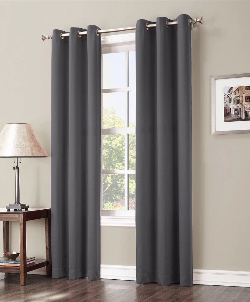 Sun Zero Preston 40" x 108" Grommet Top Blackout Curtain Panel 2 Piece Set - Charcoal Gray Retails for $90 Condition: New Ships with USPS, FedEx Home Delivery or UPS NO RETURNS.