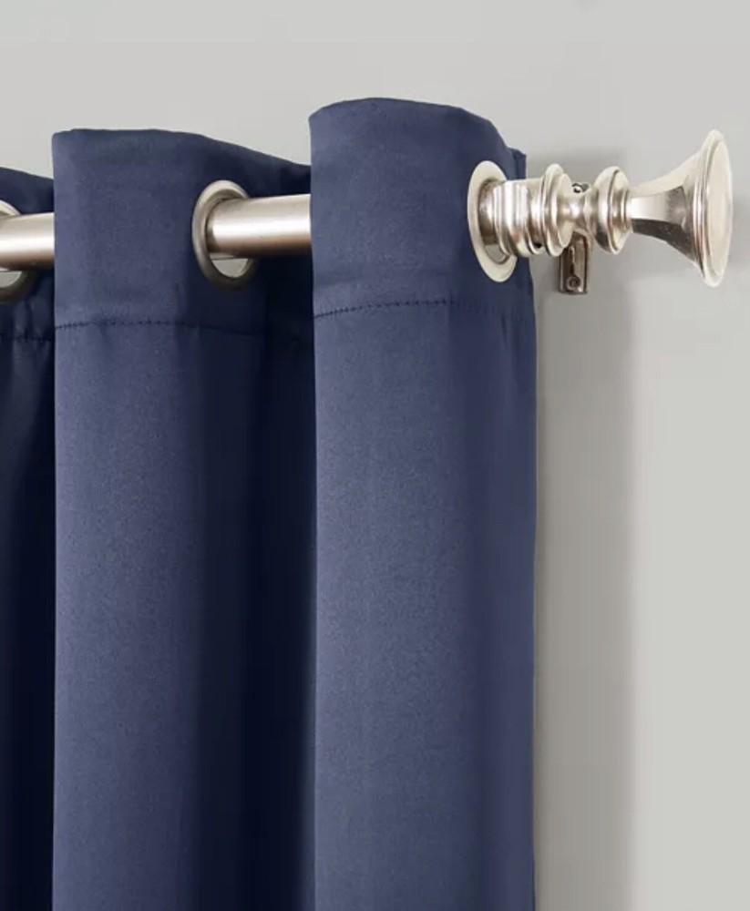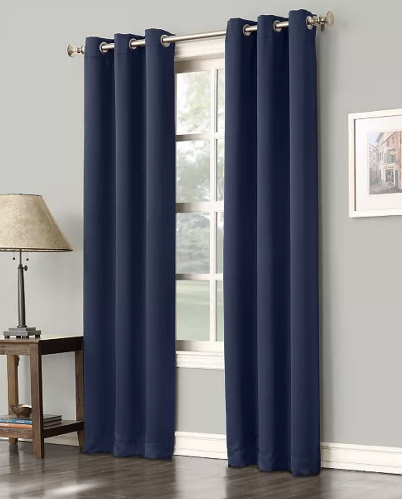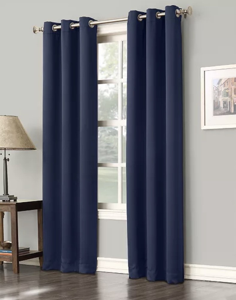 2 panels Sun Zero Preston 40" x 84" Grommet Top Blackout Curtain Panel Navy Blue. Frame your windows with the clean & simple design of the Preston blackout curtain panels. Easily slide curtains over windows to block out unwanted light & noise while adding dimension to your decor. Dimensions: 40" x 84" Includes: 1 curtain panel Polyester Machine washable