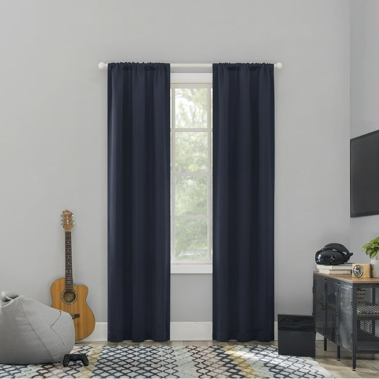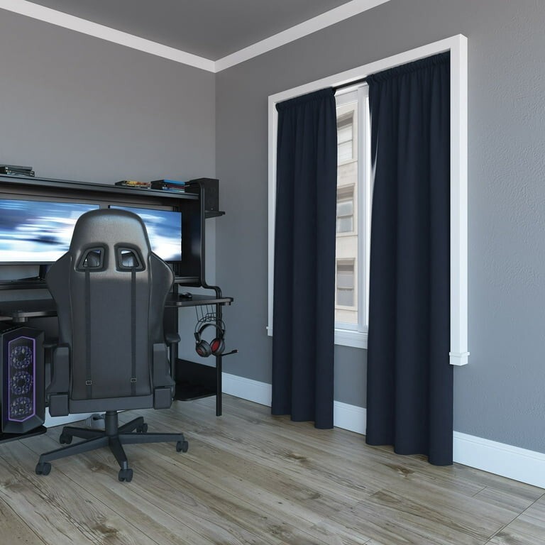 Enhance the look of your home office/study with this Sun Zero Randall Blackout Rod Pocket Curtain Bundle. The bundle includes two panels of 37"x96" in a solid navy blue color and made of noise-reducing and thermal lining materials. The curtains have a blackout feature that ensures complete privacy and blocks out excess sunlight. The rod pocket curtain heading adds an elegant touch to the curtains and makes them easy to install. The curtains are made of polyester material, which makes them durable and long-lasting. This bundle is perfect for anyone who wants to add a touch of elegance and privacy to their home office/study.