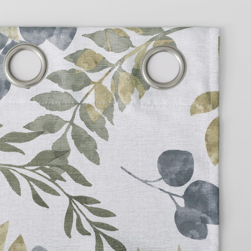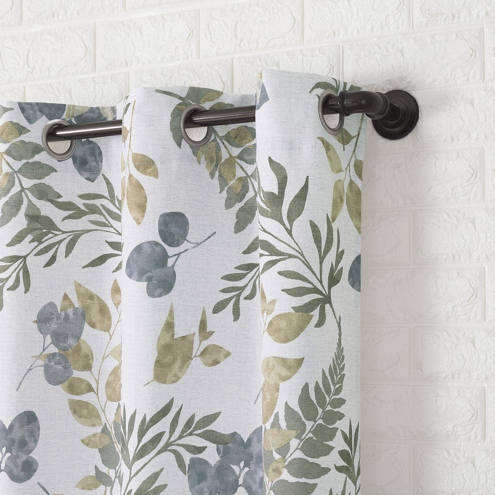 Featuring a botanical leaf print design, Sun Zero Remi Floral Leaf Print Blackout Grommet Curtain Panels add global intrigue into any living space. Equipped with built-in metal grommets for easy hanging on standard curtain rods up to 1.5" in diameter. Sun Zero Blackout technology blocks out most outside light, offers outside noise reduction by up to 30%, and decreases energy lost through your windows by up to 40%. Comfort is optimized with thermal properties that help keep summer heat and winter chill out of your home. Hang in your living room for enhanced privacy, or in your bedroom for a sounder, more uninterrupted sleep. Sold as individual panels measuring 40" width by 63" length. Measure carefully before selecting your desired size and quantity. Rod not included. Machine wash cold on gentle cycle. Use non-chlorine bleach when needed. Tumble dry on low heat. Botanical leaf print design Blackout technology blocks out most unwanted light while enhancing privacy Energy Efficient design reduces energy lost through your windows by up to 25% Thermal properties help keep summer heat and winter chill out of your home Noise reduction up to 25% helps you get a sounder, more uninterrupted sleep Built-in metal grommets fit curtain rods up to 1.5" in diameter