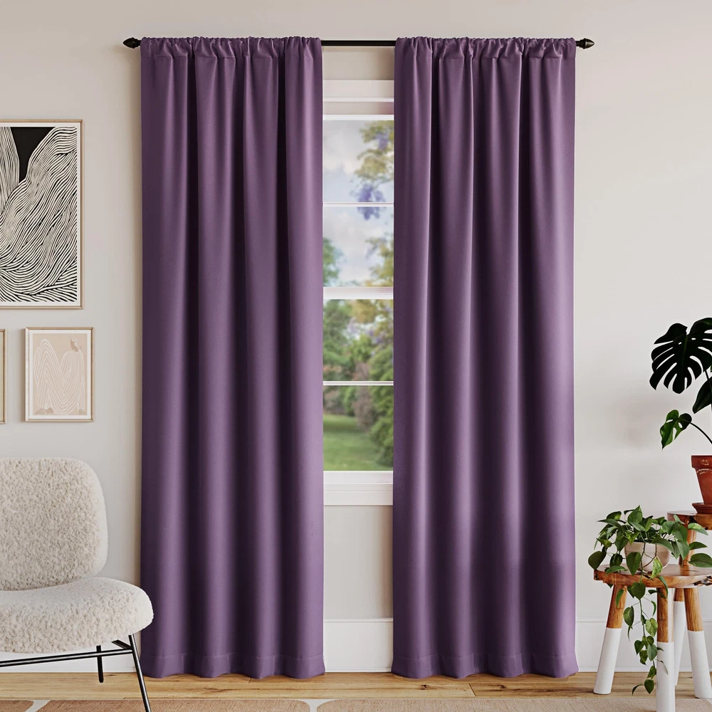 These curtains are amazing! The deep amethyst purple adds such a rich, elegant touch to my room, and the blackout feature is no jokeβtotal darkness even at midday. They also help muffle outside noise, making my space feel so much cozier. The rod pocket design was easy to hang, and the fabric feels high-quality. Definitely worth it for better sleep and a stylish upgrade!
