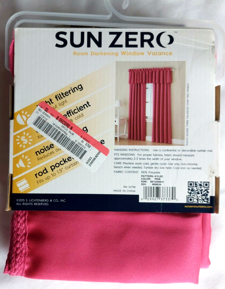 Sun Zero Room Darkening Rod-Pocket Kylee Pink Window Valance 54"x18" 100% Polyester Machine Washable Light Filtering Energy Efficient Noise Reducing Fits up to 1.5 inch Curtain Rod