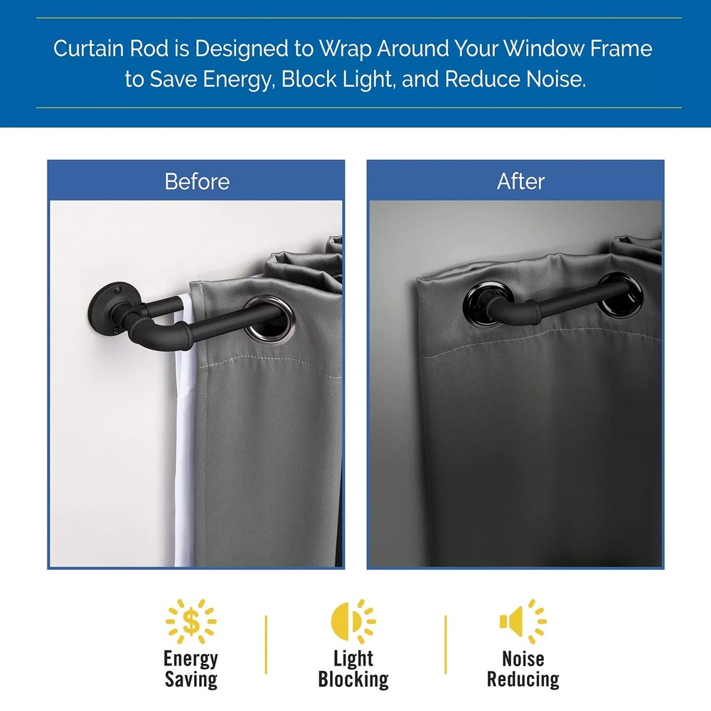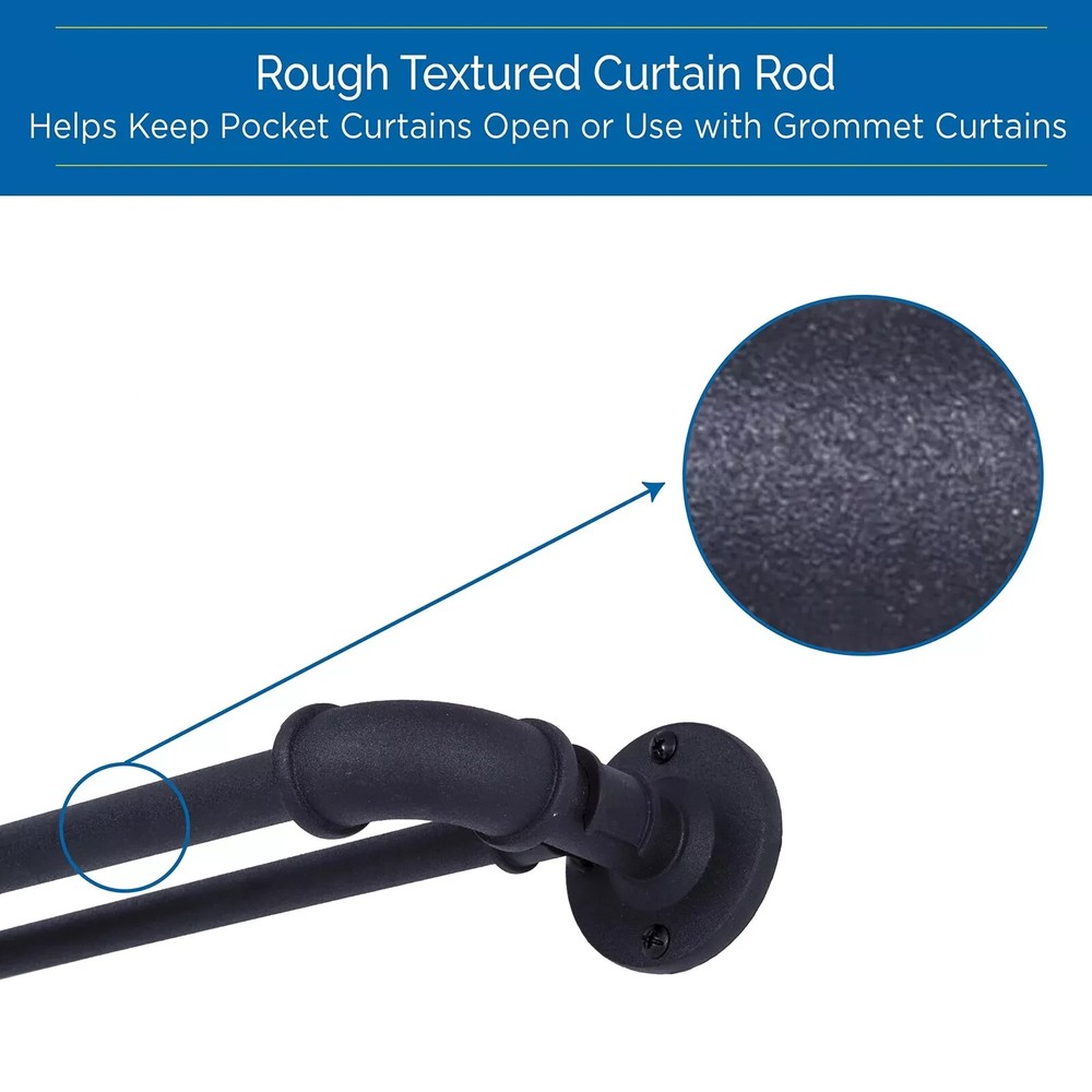 36 - 66" - Double Curtain Rod Sun Zero Bronn Industrial 3/4" Blackout Double Curtain Rod is designed to wrap around your window frame to save energy, block light, and reduce noise The textured telescoping rod is adjustable in length from 36-66" to fit your window and projects 3.75" from the wall The 3/4" diameter rod is suited for larger windows in larger rooms of your home such as the living room, dining room, or bedroom Pair with Sun Zero grommet curtain panels (sold separately) to maximize energy saving, light blocking, and noise reducing features Includes: one telescoping double curtain rod with two mounting brackets, one center support, screws, drywall anchors, and installation instructions