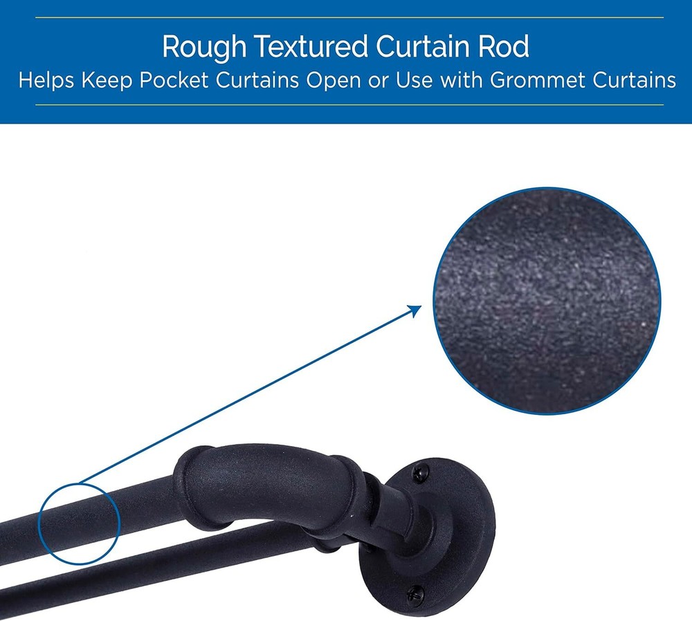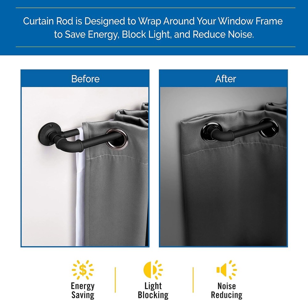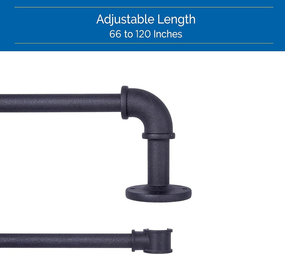 Sun Zero SN47080 Bronn Industrial Pipe Blackout Wrap 66-120", Matte Black Product Details Brand: Sun Zero Color: Matte Black Product Dimensions: 66"L x 120"W Material: Carbon Steel Mounting Type: Wall Mounted Item Weight: 3.31 Pounds Maximum Weight Recommendation: 20 Pounds Manufacturer: Kenney Manufacturing Company Sun Zero Bronn Industrial 3/4" Blackout Double Curtain Rod is designed to wrap around your window frame to save energy, block light, and reduce noise The textured telescoping rod is adjustable in length from 66-120" to fit your window and projects 3.75" from the wall The 3/4" diameter rod is suited for larger windows in larger rooms of your home such as the living room, dining room, or bedroom Pair with Sun Zero grommet curtain panels (sold separately) to maximize energy saving, light blocking, and noise reducing features Includes: one telescoping double curtain rod with two mounting brackets, one center support, screws, drywall anchors, and installation instructions The Sun Zero Bronn Industrial 3/4" Blackout Double Curtain Rod is designed to wrap around your window frame to save energy, block light, and reduce textured matte black finished industrial styled telescoping pipework steel rod is adjustable from 66-120" to fit a variety of window sizes and projects 3.75" from the on larger windows in larger rooms, like your bedroom, dining room, or living room to hang light, medium, or heavyweight curtains. The textured finish make this curtain rod ideal for hanging curtains with grommets or with clip double rod adds a layered look to your curtains, giving you more control over how much light to let into your room throughout the day and providing more insulation during colder months. To layer, place heavier, decorative curtains on the 3/4" diameter front rod and lighter, sheer curtains on the 5/8" diameter back with Sun Zero curtain panels (sold separately) to maximize energy saving, light blocking, and noise reducing features.Blackout Rod Set Includes: one telescoping steel double curtain rod with two mounting brackets, one center support, screws, drywall anchors, and installation instructions.