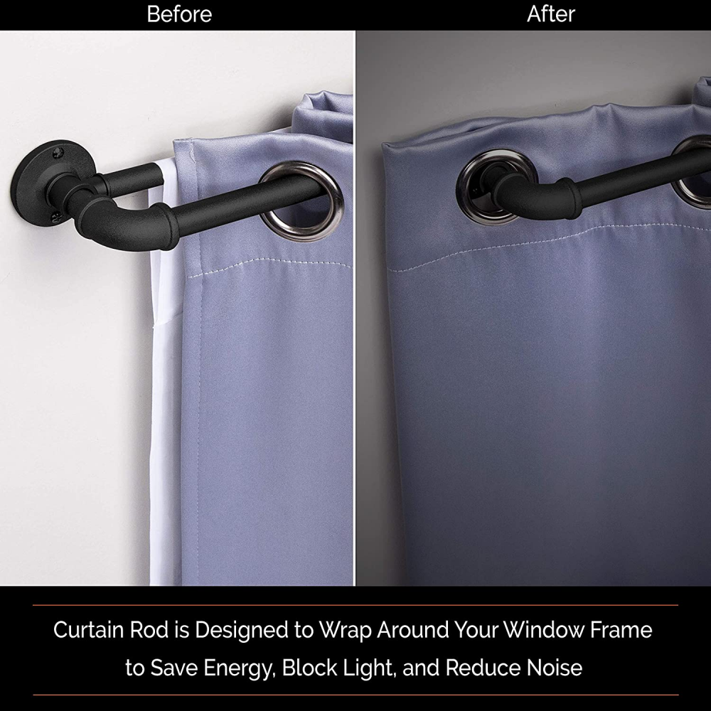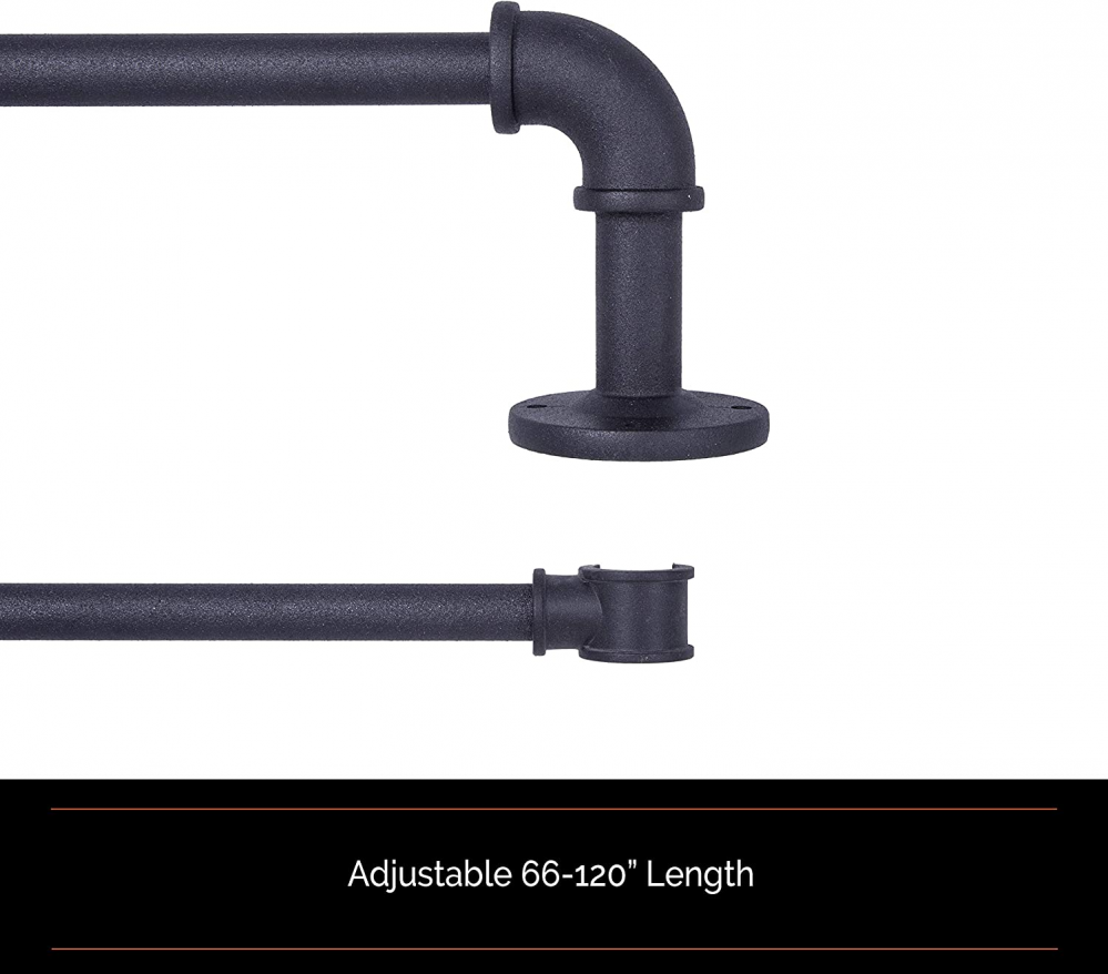 Sun Zero SN47080 Bronn Wrap Around Window Double Curtain Rod, 66-120", Matte Black Product Details Product Dimensions: 120 x 3.75 x 2 inches Item Weight: 3.61 pounds Manufacturer: Kenney Manufacturing Item model number: SN47080 Fabric Type: Nullify Manufacturer's Suggested Maximum Weight: 22 Pounds Finish Types: Matte black Assembly Required: Yes Batteries Required?: No Included Components: Includes: one telescoping double curtain rod with two mounting brackets, one center support, screws, drywall anchors, and installation instructions Brand: Sun Zero Color: Matte Black Material: Blackout Mounting Type: Wall Mounted Maximum Weight Recommendation: 22 Pounds Product Dimensions: 120"L x 3.75"W Nullify Sun Zero Bronn Industrial 3/4" Room Darkening Double Curtain Rod is designed to wrap around your window frame to save energy, block light, and reduce noise The textured telescoping rod is adjustable in length from 66-120" to fit your window and projects 3.75" from the wall The 3/4" diameter rod is suited for larger windows in larger rooms of your home such as the living room, dining room, or bedroom Pair with Sun Zero grommet curtain panels (sold separately) to maximize energy saving, light blocking, and noise reducing features Includes: one telescoping double curtain rod with two mounting brackets, one center support, screws, drywall anchors, and installation instructions