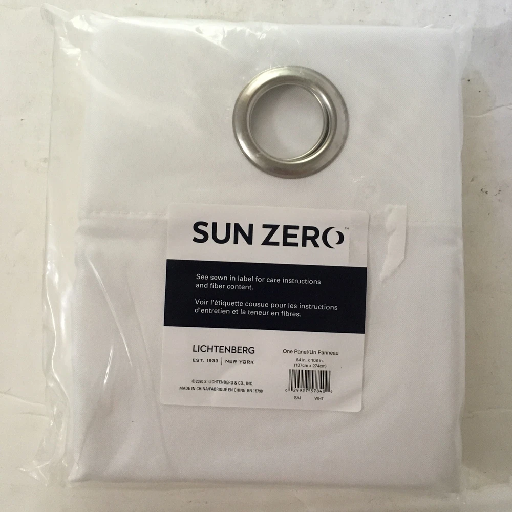 WE DO NOT SHIP TO P.O. BOXES. PLEASE PROVIDE A PHYSICAL MAILING ADDRESS. NEW. NEVER USED Item will be shipped free by USPS Priority Mail/UPS within 48 Lower States (NO SHIPPING for Alaska, Hawaii or Puerto Rico) Augment your outdoor or indoor space with the Sun Zero Sailor Curtain Panel. Woven with durable stain-resistant, water-resistant, fade-resistant, and light-blocking lightweight fabric offering upf 50+ UV protection, these curtains are the perfect solution to add privacy and protect your deck, patio, porch, or outdoor space from the elements. Perfect for pergolas and Gazebos, Sun Zero Curtain Panel is equipped with rust-proof grommets allowing easy hanging on a standard curtain rod up to 1.5 inch in diameter. Highlights Fade resistant durable indoor/outdoor fabric Offers light blocking with UPF 50+ UV Protection Stain and water resistant lightweight material Ideal for outdoor pergolas and gazebos Rust-proof grommets fit curtain rods up to 1.5" in diameter Each panel sold separately