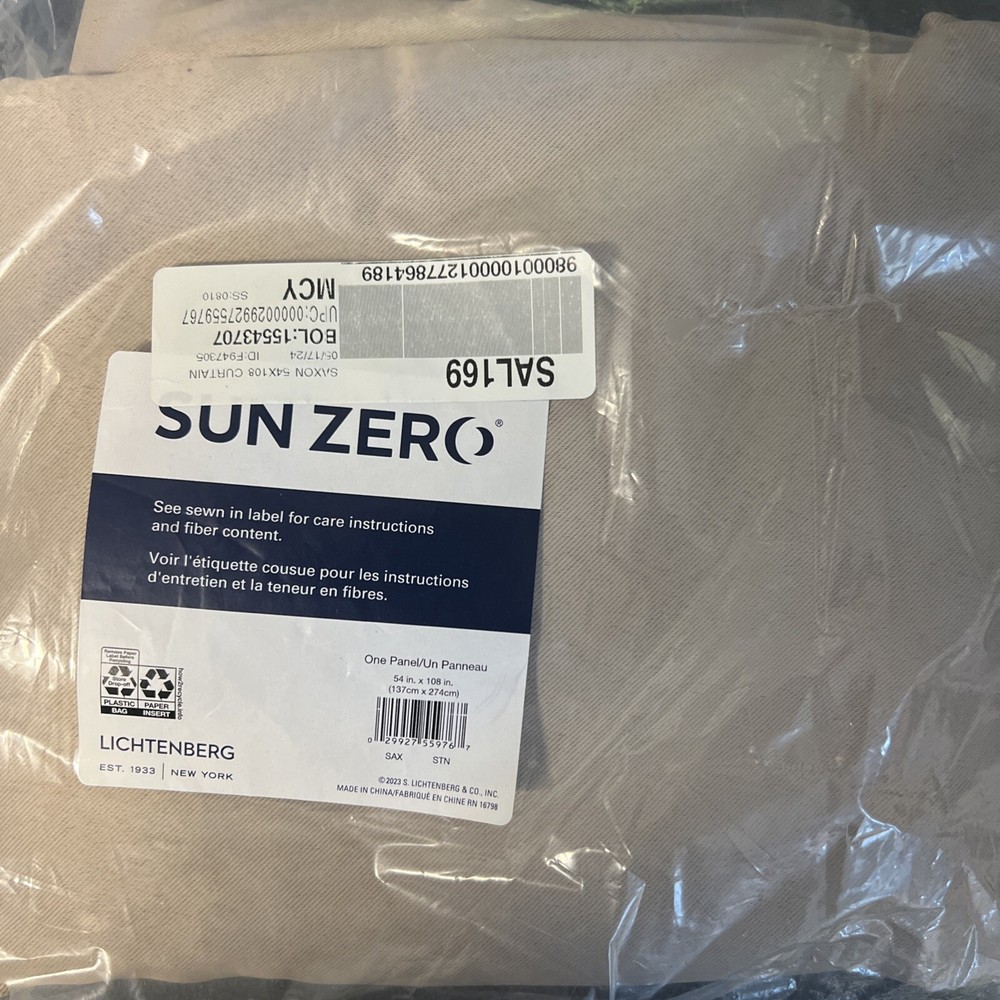 The Saxon Blackout Curtains add modern sophistication to any living space. Sun Zero blackout technology blocks most outside light, reduces up to 25% of outside noise, and decreases energy lost through your windows by up to 25%. Hang in your living room for enhanced privacy, or in your bedroom for a sounder, more uninterrupted sleep. Each curtain panel sold separately. Product Features Dimensions: 54" x 108" Includes 1 curtain panel Metal grommets fit curtain rods up to 1.5" in diameter Designed to reduce outside noise and decrease energy lost through your windows by up to 25% Polyester Machine washable Imported