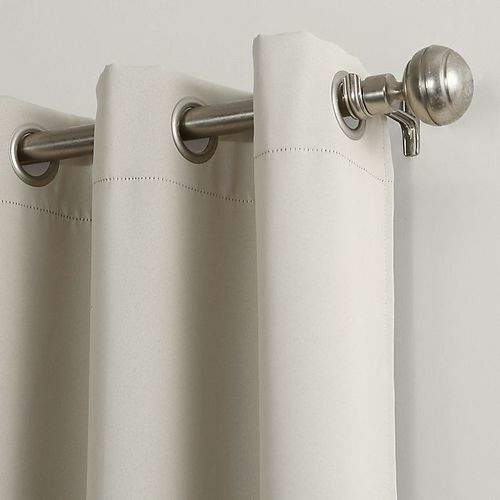 This is an open box item. It does not appear to have been opened. Package may show slight signs of handling. Sun Zero® Saxon Grommet Curtain Panels infuse a modern sophistication into any living space. Equipped with built-in metal grommets for easy hanging on standard curtain rods up to 1.5" in diameter. Room Darkening technology blocks out some unwanted light while enhancing privacy Energy efficient design reduces energy lost through your windows by up to 25% Thermal properties help keep summer heat and winter chill out of your home Noise reduction up to 25% helps you get a sounder, more uninterrupted sleep Built-in metal grommets fit curtain rods up to 1.5" in diameter Panels sold individually. Measure carefully prior to purchase. (Image features 2 panels) Machine washable Panels measures 54" W Imported