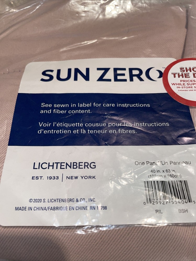Sun Zero Solid Blush (1) Panel Curtain 40 x 63in New.