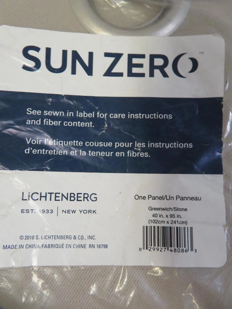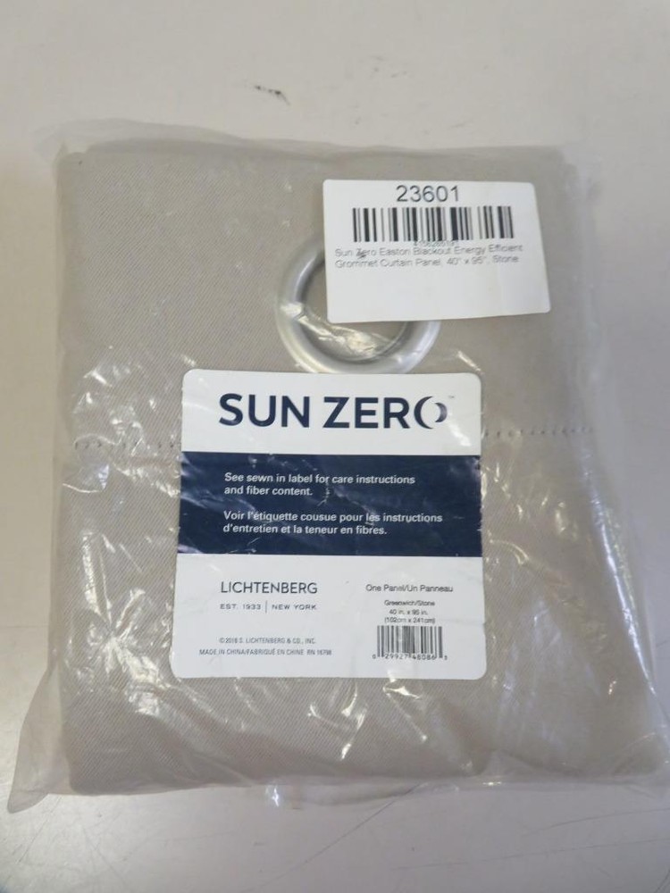 Sun Zero Gavin Blackout Panel is perfect for any room in your home. The woven solid design with an easy to hang grommet-top offers a classic style that fits in with any room decor while blocking light and noise for better sleep; help keep your home cooler in the summer and warmer in the winter. Blackout or opaque panels virtually block all light; a lamp has to be turned on to see inside a room when closed. This panel gives complete privacy. Energy efficient Light blocking Noise reducing Privacy enhancing Machine washable Sold as 1 panel per package 100% polyester Dimensions Product Height (in.) 95 in Product Length (in.) 95 in Product Width (in.) 40 in Rod Diameter (In.) 1.5 in Width (in) x Length (in) 40in x 95 in Details Color Family Gray Color/Finish Stone Deco Style Casual Decor Type Window Treatment Features Noise Cancelling, Thermal Hanging Style Grommet Included No Additional Items Included Individual/Set Individual Indoor/Outdoor Indoor Light Filtering Level Blackout Material Polyester Material Polyester (100%) Origin Imported Pattern Type Solid Product Weight (lb.) 1.5 lb We will be happy to answer any questions or provide more information, just click "ask a question" at the bottom of the page. Thanks! Sun Zero Stone Woven Thermal Blackout Window Curtain - 40 in. W x 95 in. L Sun Zero Stone Woven Thermal Blackout Window Curtain - 40 in. W x 95 in. L Click images to enlarge Description Sun Zero Gavin Blackout Panel is perfect for any room in your home. The woven solid design with an easy to hang grommet-top offers a classic style that fits in with any room decor while blocking light and noise for better sleep; help keep your home cooler in the summer and warmer in the winter. Blackout or opaque panels virtually block all light; a lamp has to be turned on to see inside a room when closed. This panel gives complete privacy. Energy efficient Light blocking Noise reducing Privacy enhancing Machine washable Sold as 1 panel per package 100% polyester Dimensions Product Height (in.) 95 in Product Length (in.) 95 in Product Width (in.) 40 in Rod Diameter (In.) 1.5 in Width (in) x Length (in) 40in x 95 in Details Color Family Gray Color/Finish Stone Deco Style Casual Decor Type Window Treatment Features Noise Cancelling, Thermal Hanging Style Grommet Included No Additional Items Included Individual/Set Individual Indoor/Outdoor Indoor Light Filtering Level Blackout Material Polyester Material Polyester (100%) Origin Imported Pattern Type Solid Product Weight (lb.) 1.5 lb We will be happy to answer any questions or provide more information, just click "ask a question" at the bottom of the page. Thanks! Get images that make Supersized seem small. Showcase your items with Auctiva's Listing Templates! THE simple solution for eBay sellers. Track Page Views With Auctiva's Counter