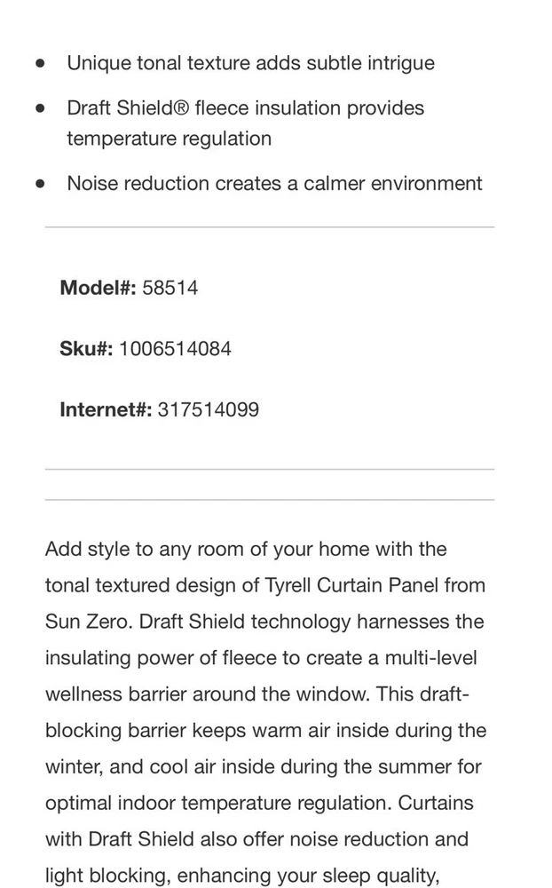 Sun Zero Tyrell T Texture DraftShield Fleece Insulated Blackout Curtain 2 Panels.
