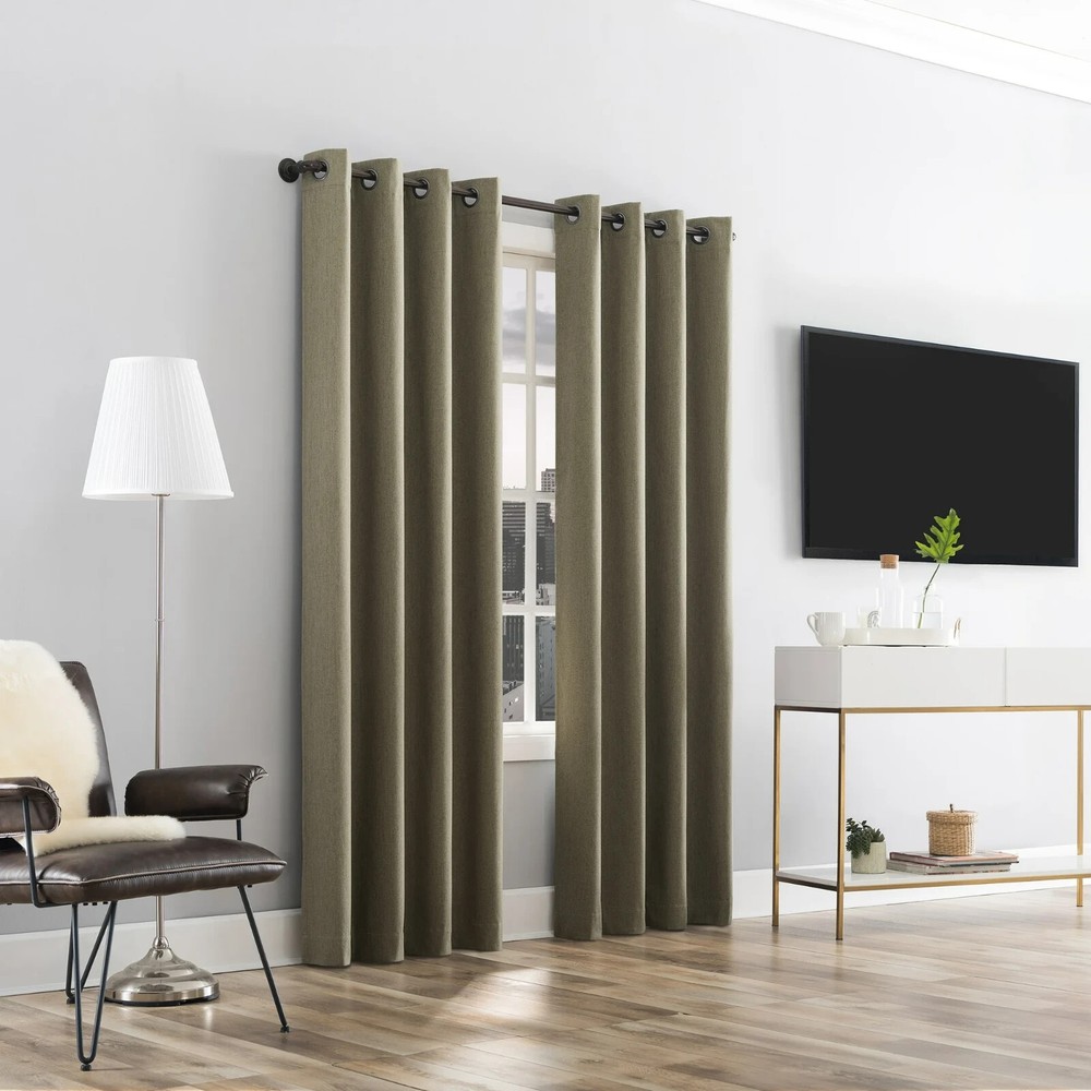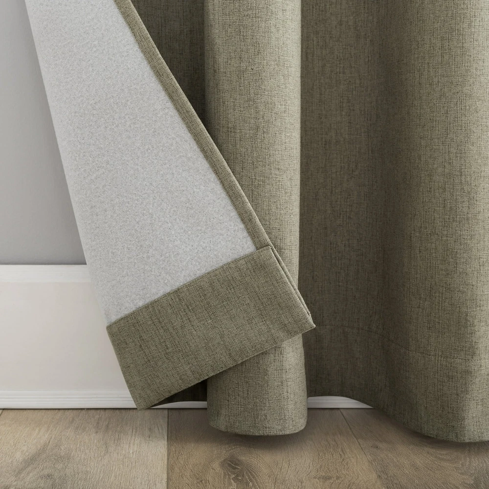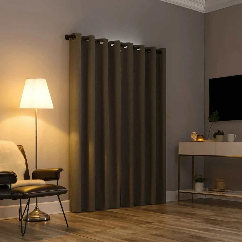 Unique tonal texture adds subtle intrigue Draft Shield® fleece insulation provides optimal temperature regulation Noise reduction creates a calmer environment Total blackout for enhancing sleep quality, wellness, and comfort Built-in metal grommets fit curtain rods up to 1.5" in diameter Includes 1 single curtain panel