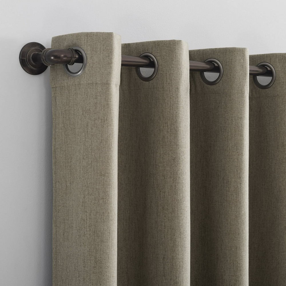 Product details Add style to any room of your home with the tonal textured design of Tyrell Curtain Panel from Sun Zero. Draft Shield technology harnesses the insulating power of fleece to create a multi-level wellness barrier around the window. This draft-blocking barrier keeps warm air inside during the winter, and cool air inside during the summer for optimal indoor temperature regulation. Curtains with Draft Shield also offer noise reduction and light blocking, enhancing your sleep quality, wellness and comfort. The built-in grommet design fits standard curtain rods up to 1.5" in diameter. Sold as individual panels measuring 50" width by 84" length. Measure carefully before selecting your desired size and quantity. Machine wash cold on gentle cycle. Use non-chlorine bleach when needed. Tumble dry on low heat. Unique tonal texture adds subtle intrigue Draft Shield® fleece insulation provides optimal temperature regulation Noise reduction creates a calmer environment Total blackout for enhancing sleep quality, wellness, and comfort Built-in metal grommets fit curtain rods up to 1.5" in diameter Includes 1 single curtain panel Curtain rod not included. Double rod may be needed for layering.