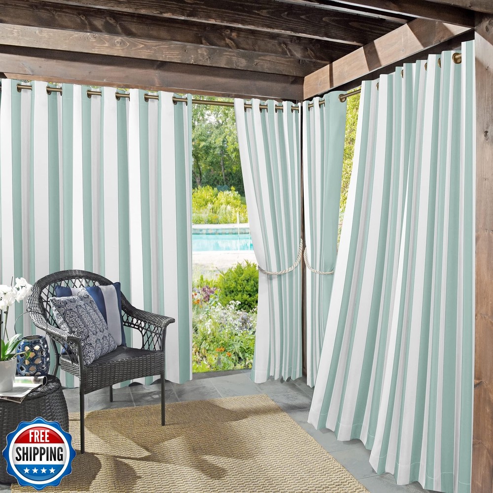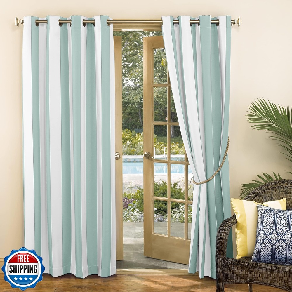 Sun Zero Valencia 2-Pack Cabana Stripe Indoor/Outdoor UV Protectant Energy Efficient Grommet Curtain Panel Pair Features Item Package Dimension: 10.1L x 9.2W x 3.9H inches Item Package Weight - 3 Pounds Item Package Quantity - 1 Product Type - CURTAIN Shipping Free & Fast Shipping: We offer free shipping to most of the USA with a normal delivery time of 3-7 days. However, due to the current situation, additional delivery time (up to 3 weeks) may be required for some items. Alternative Carriers: We may use alternative carriers (e.g., USPS, FedEx, UPS) to ensure your package arrives safely and on time. Due to the use of multiple carriers, we are unable to provide a tracking number automatically. Handling Time: Orders are processed and shipped within 1-2 business days of receiving cleared payment. Shipping Restrictions: Shipping to Alaska, Hawaii, Puerto Rico, Guam, and other US territories may incur shipping charges or delivery restrictions. Please contact us before ordering, or your order can be refunded/cancelled. State Restrictions: Certain items may not be shipped to California due to state regulations. Contact for Tracking Updates: If you require tracking updates or have any concerns about the delivery of your order, please feel free to contact us, and we will be happy to assist you. Return Policy 30-Day Hassle-Free Returns: If you are not completely satisfied with your purchase, you can return the item for free within 30 days of receiving it for a full refund or exchange. Easy Return Process: Contact us, and we will provide you with a prepaid return shipping label and detailed instructions. No Restocking Fee: There are no restocking fees for returns. However, the buyer is responsible for return shipping costs if the return is not due to a seller's error. Refund Processing: Refunds will be processed within 1 business day of receiving the returned item in its original condition. Payment We accept all major credit cards, PayPal, and Apple Pay for your convenience. Your payment information is secure and encrypted to ensure a safe and seamless transaction. Please complete your payment within 3 days of purchase to avoid any delays in shipping. Feedback Your feedback is extremely important to us. We strive to provide the best products and customer service possible. If you are satisfied with your purchase, please take a moment to leave us a positive review. If you have any concerns or issues with your order, please contact us before leaving negative feedback. We are committed to resolving any problems and ensuring your satisfaction. Contact Us If you have any questions or concerns, please feel free to reach out to our customer support team. You can contact us through the eBay messaging system. We are available Monday to Friday, 9:00 am to 5:00 pm EST, and we will do our best to respond to your inquiry within 24 hours. Thank you for supporting our small family business!