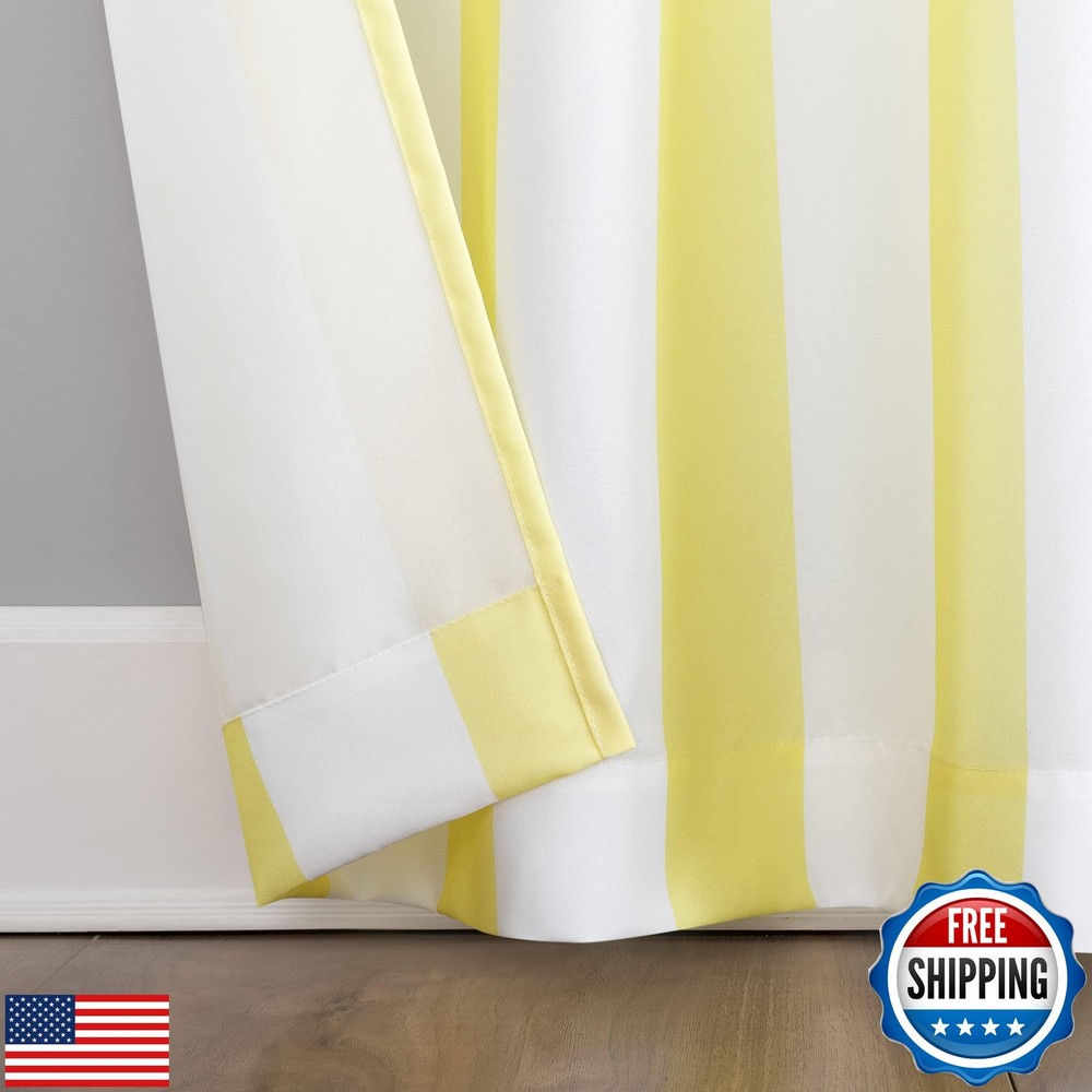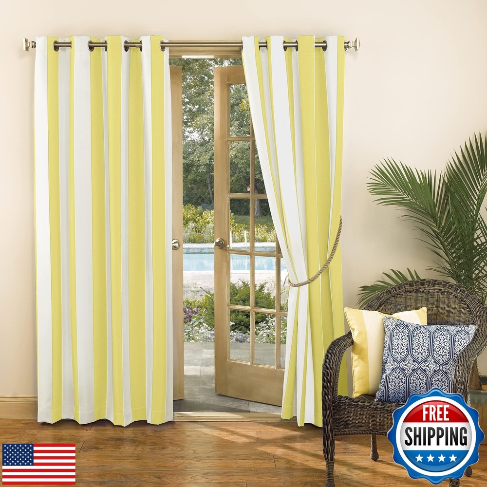 Sun Zero Valencia 2-Pack Cabana Stripe Indoor/Outdoor UV Protectant Energy Efficient Grommet Curtain Panel Pair, Yellow, 54" x 95" Features Item Package Dimension: 10.2L x 8.7W x 3.1H inches Item Package Weight - 2.7 Pounds Item Package Quantity - 1 Product Type - CURTAIN Shipping Free & Fast Shipping: We offer free shipping to most of the USA with a normal delivery time of 3-7 days. However, due to the current situation, additional delivery time (up to 3 weeks) may be required for some items. Alternative Carriers: We may use alternative carriers (e.g., USPS, FedEx, UPS) to ensure your package arrives safely and on time. Due to the use of multiple carriers, we are unable to provide a tracking number automatically. Handling Time: Orders are processed and shipped within 1-2 business days of receiving cleared payment. Shipping Restrictions: Shipping to Alaska, Hawaii, Puerto Rico, Guam, and other US territories may incur shipping charges or delivery restrictions. Please contact us before ordering, or your order can be refunded/cancelled. State Restrictions: Certain items may not be shipped to California due to state regulations. Contact for Tracking Updates: If you require tracking updates or have any concerns about the delivery of your order, please feel free to contact us, and we will be happy to assist you. Return Policy 30-Day Hassle-Free Returns: If you are not completely satisfied with your purchase, you can return the item for free within 30 days of receiving it for a full refund or exchange. Easy Return Process: Contact us, and we will provide you with a prepaid return shipping label and detailed instructions. No Restocking Fee: There are no restocking fees for returns. However, the buyer is responsible for return shipping costs if the return is not due to a seller's error. Refund Processing: Refunds will be processed within 1 business day of receiving the returned item in its original condition. Payment We accept all major credit cards, PayPal, and Apple Pay for your convenience. Your payment information is secure and encrypted to ensure a safe and seamless transaction. Please complete your payment within 3 days of purchase to avoid any delays in shipping. Feedback Your feedback is extremely important to us. We strive to provide the best products and customer service possible. If you are satisfied with your purchase, please take a moment to leave us a positive review. If you have any concerns or issues with your order, please contact us before leaving negative feedback. We are committed to resolving any problems and ensuring your satisfaction. Contact Us If you have any questions or concerns, please feel free to reach out to our customer support team. You can contact us through the eBay messaging system. We are available Monday to Friday, 9:00 am to 5:00 pm EST, and we will do our best to respond to your inquiry within 24 hours. Thank you for supporting our small family business!