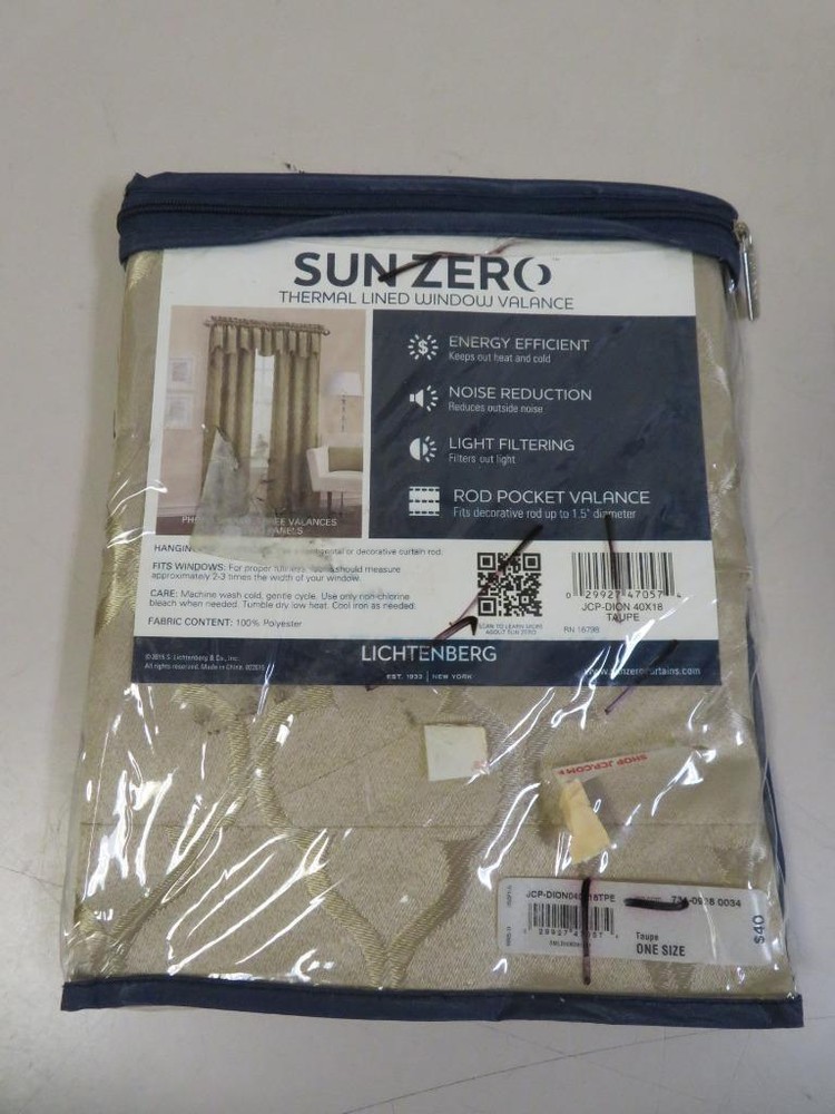 Sun Zero Thermal Lined Window Valance Energy Efficient Noise Reduction Light Filtering Rod Pocket Valance Taupe 40" x 18" 100% Polyester We will be happy to answer any questions or provide more information, just click "ask a question" at the bottom of the page. Thanks! Sun Zero Viviana Woven Trellis Thermal Lined Curtain Valance 40" x 18" Taupe Sun Zero Viviana Woven Trellis Thermal Lined Curtain Valance 40" x 18" Taupe Click images to enlarge Description Sun Zero Thermal Lined Window Valance Energy Efficient Noise Reduction Light Filtering Rod Pocket Valance Taupe 40" x 18" 100% Polyester We will be happy to answer any questions or provide more information, just click "ask a question" at the bottom of the page. Thanks! Images sell! Get Supersized Images & Free Image Hosting Create your brand with Auctiva's Customizable Templates. Attention Sellers - Get Templates Image Hosting, Scheduling at Auctiva.com. Track Page Views With Auctiva's Counter