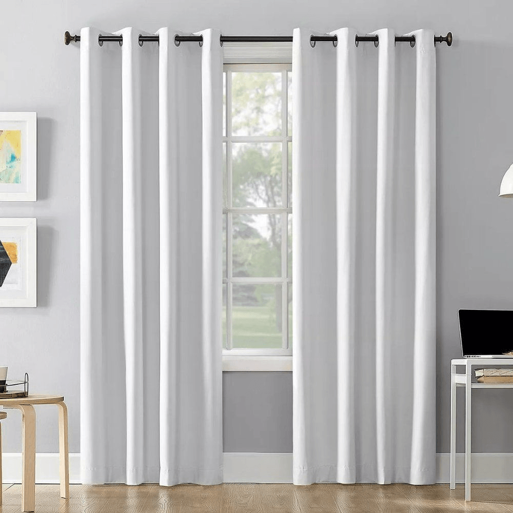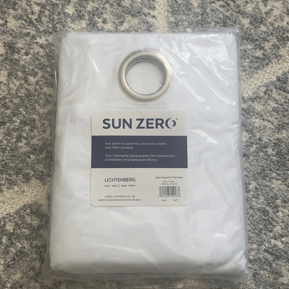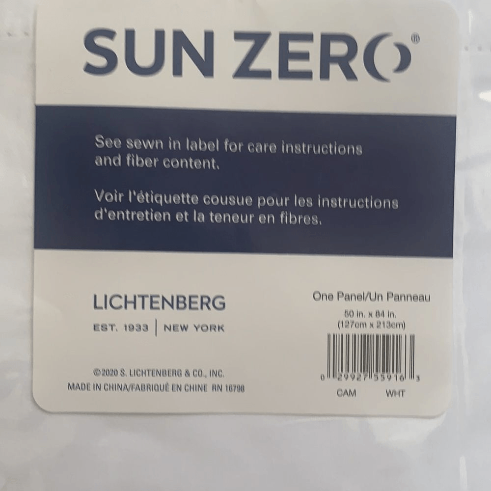 Sun Zero White Lichtenberg 1 Panel Sz 50” x 84” Silver grommets. Packaged in original packaging. Stock photo is showing two panels but there is only one panel for sale. Another panel can be purchased from any box store. Keeps the heat out during the summer and the chill out during the winter. Ships quickly.