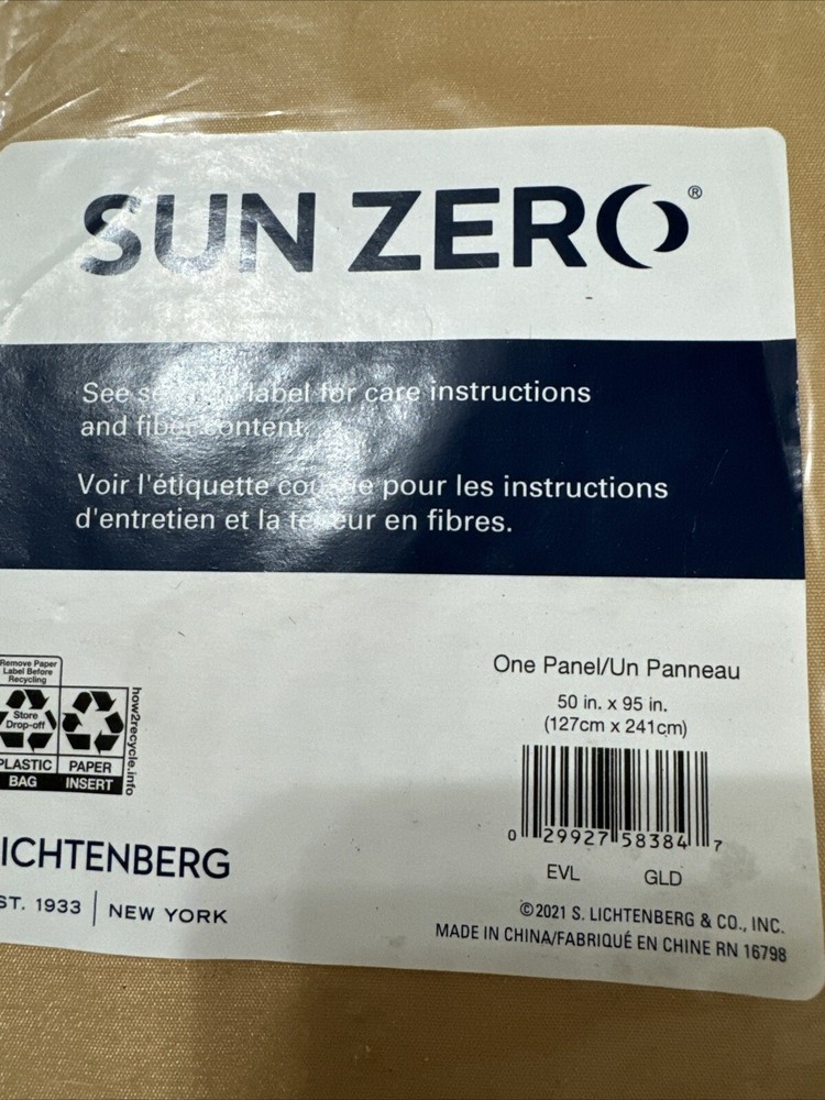 Sun Zero Window Panel Curtain 50 X 95 Gold NEW NWT. Condition is New. Shipped with USPS Ground Advantage.