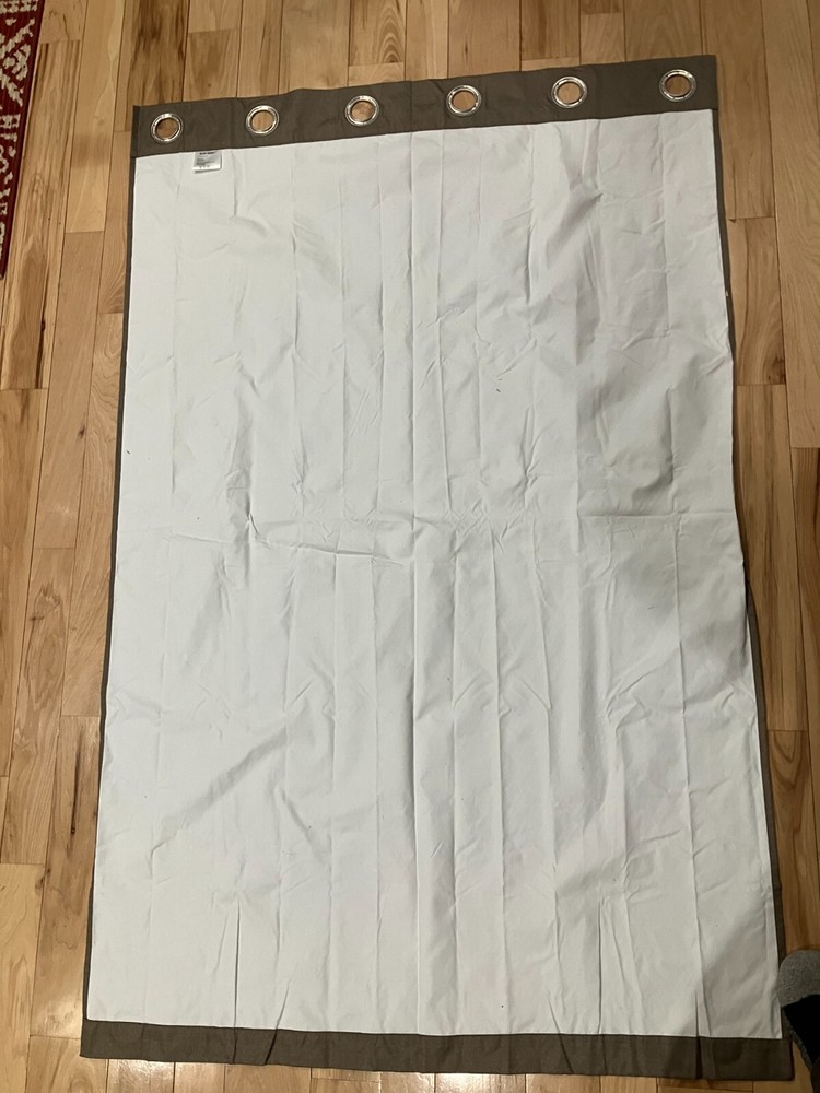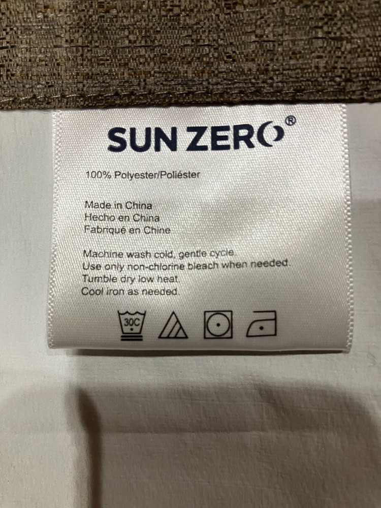 Enhance the privacy of your room with these stylish Sun Zero blackout curtains. The panels are mocha or stone color on one side, and white on the other side (see picture). Each of the six (6) panels included measures approximately 40 1/4" wide and 62 3/4" tall and are made of 100% polyester (see picture of tag). Each panel has six (6) metal grommets (1-1/2" inside diameter) at the curtain heading which ensures flexible installation on any wall, making them perfect for any room in your home. We have other blackout curtains hung in our house. We nail small, 10 penny finish nails into the window trim above the window and hang the curtains when we want privacy. We take them down and hang them in the closet when not in use. The finish nails are fairly invisible if you don't know they're there. We purchased these but they were the wrong size. We use blackout panels for mainly for privacy. I don't believe these are thermal, but they do provide some heat retention in the winter, and sun blocking in the summer. There are six (6) panels included. These panels are out of the box but have never been hung. They are In great condition!