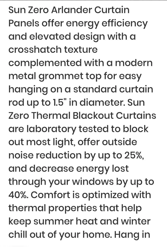 Elevate the functionality and style of your living space with the Sun Zero Blackout Window Panel. Designed for versatility, it fits seamlessly into any room, offering a classic beige crosshatch pattern that complements a variety of decor themes. The panel's dimensions are a comfortable 40 inches in width and 84 inches in length, ensuring ample coverage for your windows. Crafted for privacy and light control, this panel features a blackout lining that effectively blocks out exterior lighting, ideal for creating a serene environment. Noise-reducing capabilities make it a perfect addition to your home, helping to drown out exterior sounds for a more peaceful atmosphere. The panel is also machine washable, ensuring easy upkeep and lasting beauty.