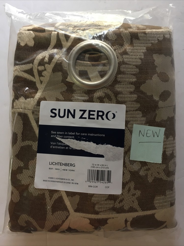 WE DO NOT SHIP TO P.O. BOXES. PLEASE PROVIDE A PHYSICAL MAILING ADDRESS. Item will be shipped free by USPS Priority Mail/UPS within 48 Lower States (NO SHIPPING for Alaska, Hawaii or Puerto Rico) BRAND NEW NEVER USED. Featuring a global medallion print design, Sun Zero Cora Blackout Curtain Panels add global intrigue into any living space. Equipped with built-in silver metal grommets for easy hanging on standard curtain rods up to 1.5" in diameter. Sun Zero Blackout technology blocks out most outside light, offers outside noise reduction by up to 30%, and decreases energy lost through your windows by up to 40%. Comfort is optimized with thermal properties that help keep summer heat and winter chill out of your home. Hang in your living room for enhanced privacy, or in your bedroom for a sounder, more uninterrupted sleep. Includes 2 curtain panels for a complete window. Hexagonal geometric design infused with a floral medallion motif on a woven jacquard for elevated style Blackout technology blocks out most unwanted light while enhancing privacy Energy Efficient design reduces energy lost through your windows by up to 30% Thermal properties help keep summer heat and winter chill out of your home Silver metal grommet top fits a standard curtain rod up to 1.5" for easy hanging Includes 2 curtain panels for a complete look
