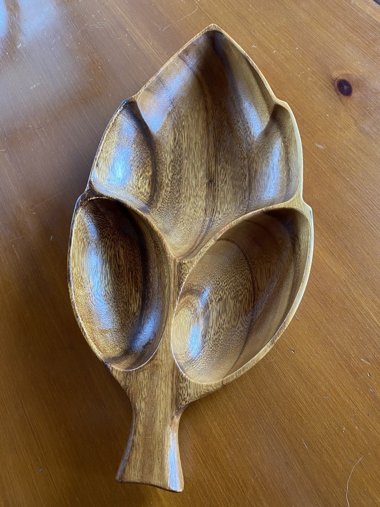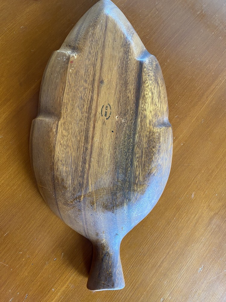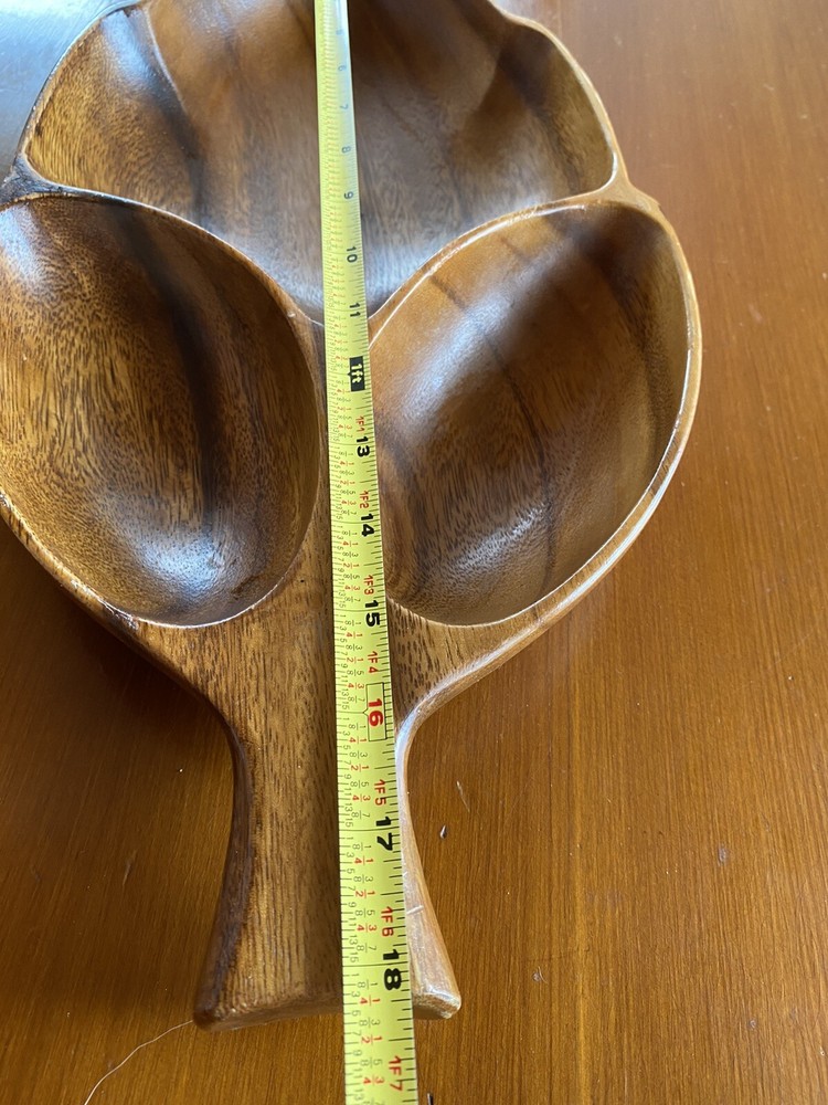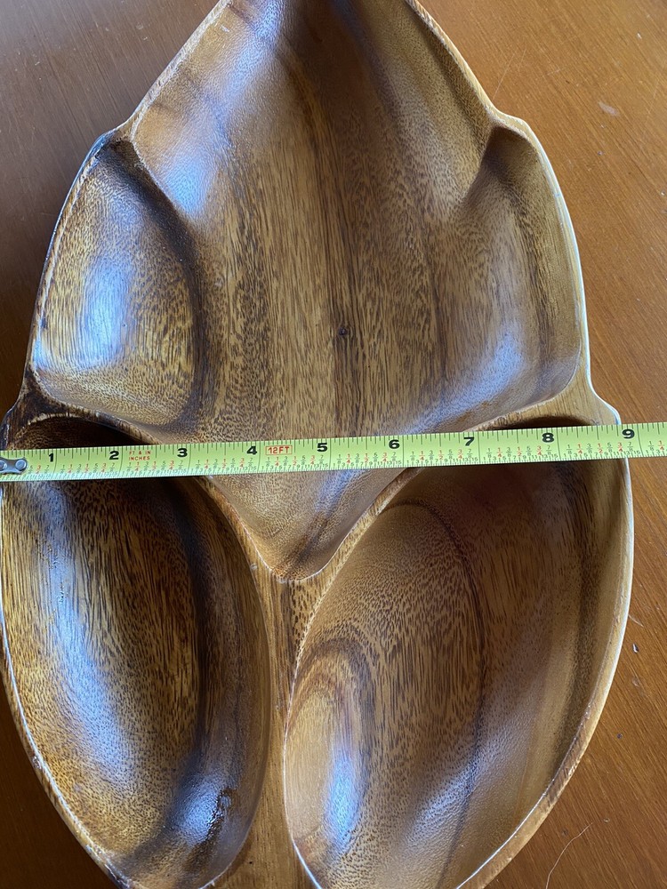 Super Large Vintage Monkey Pod Wood Bowl Leaf Shape Chip and Dip Server. See pictures for size 19x9...
