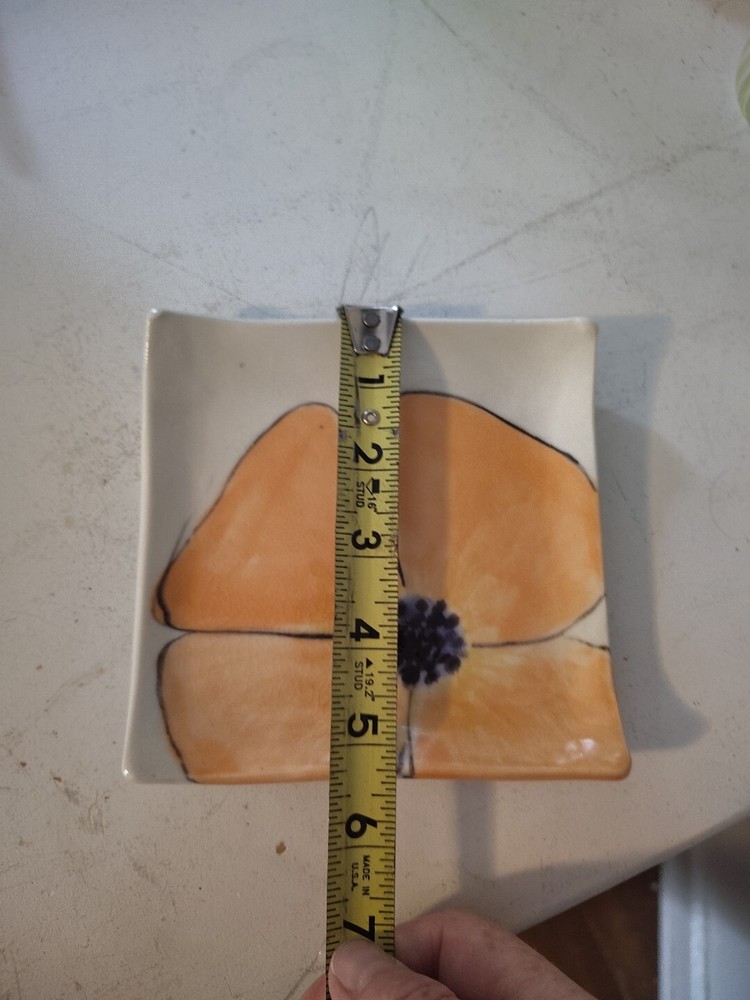 Susan Goble Garden Gate Studio Pottery Trinket Dish 5.5in X 5.5 In Orange Poppy . Condition is Used. Shipped with USPS Ground Advantage.
