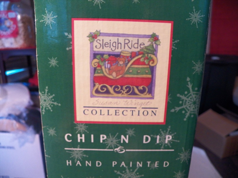 Susan Winget Large Christmas Memories Sleigh Ride Collection CHIP N DIP Bowl Large Ceramic 14" Diameter chip Bowl with a Sleigh for the Dip. Sleigh Measures 6" x 3" x 4" HIGH Item is new in box Open box for pictures Great new condition No sign of damage *************************************************************************************** Buying as pictured. We do combine Shipping charges for more then one item bought. With over 4000 items listed , sit back and have fun shopping. All Items come from a smoke free home If you have any questions please don’t hesitate to ask! We Value your opinion greatly, and will make every effort to earn your loyalty. Your satisfaction is our goal. Insrance is included on all priority mail shipping Please contact us if you don't feel you have received top rated service before leaving feedback. This will allow us time to remedy the situation. We love giving feedback knowing that you are happy with your purchase and transaction Seller's Note: Locker 1M shelf 97 - #401880969292 PS. In the rare change that an item or items are damage during shipping. The USPS Has Change their Process in the Way accept Claims. I can no longer file a claim with out have the item and the packaging to take to the post office . I was Told That I must send the buyer a print out of the shipping recite, Which will be send along with all Priority mail item sold. After Receiving you item and you fine that it is damage, the buyer needs to take it the recite along with item or items damage to their local Post office and file a Claim.