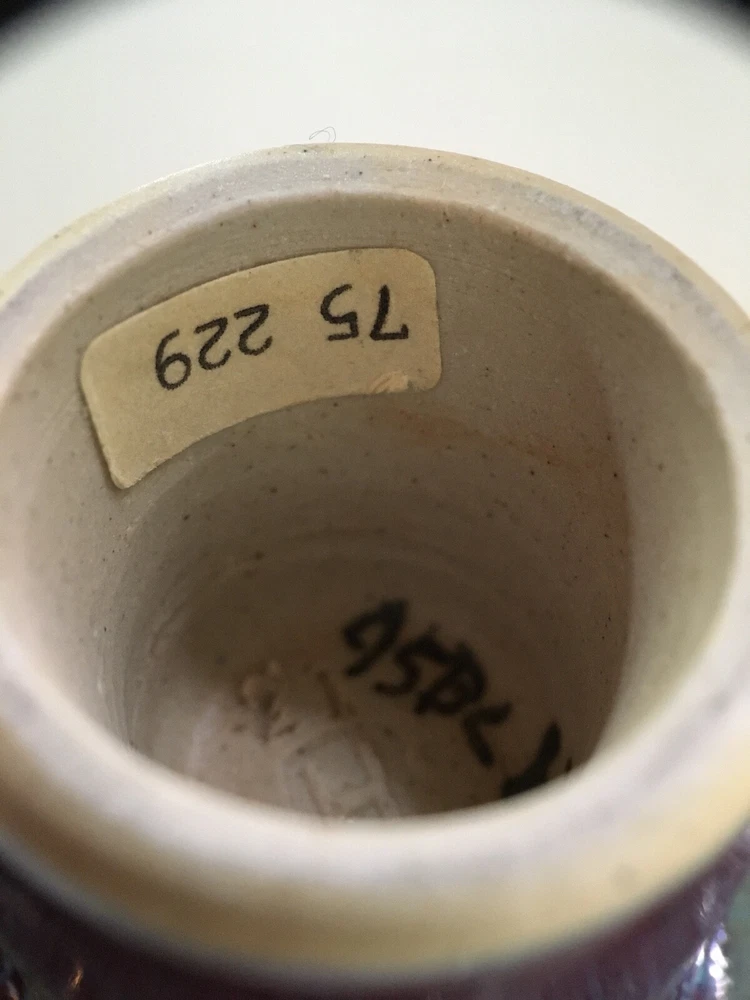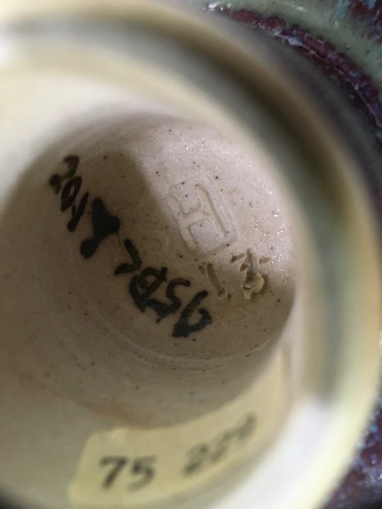 Product Detail What We Love Studio piece What you Should Know Sven Hofverberg (1923-1998) was one of the leading Swedish potters of the 20th century. He was a member of the Scandinavian pottery tradition. After completing his studies and early career he started his own studio in Landskrona. He became a master of the potter's wheel and glaze, producing wonderful one-of-a-kind Stoneware pieces. Collections Sven's work is on display at the National Gallery of Sweden. Technical Detail Lanskrona black ink stamped base SH detail and exhibition sticker Ca. 1970's 11 cm dia. ~ 200 g