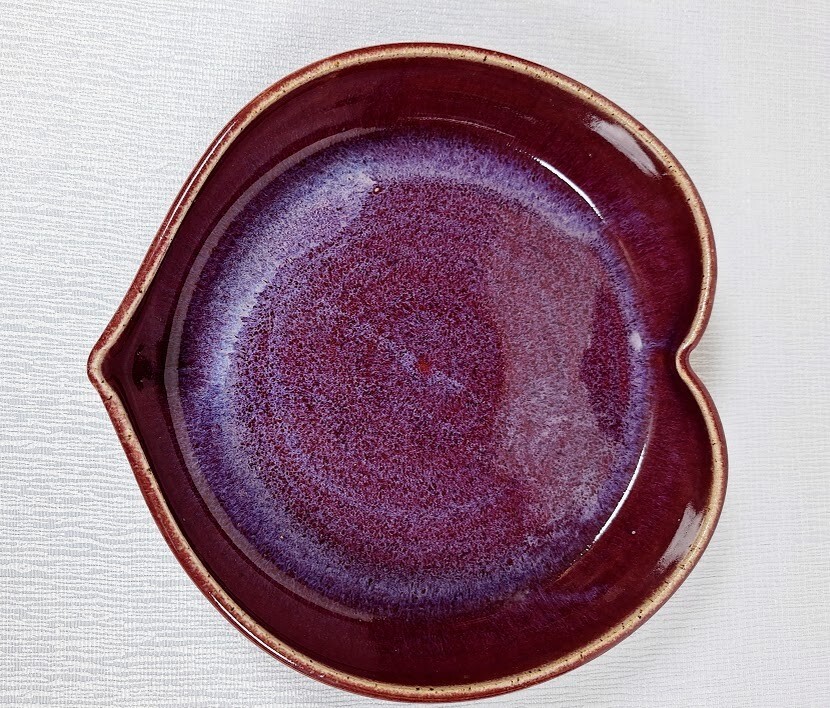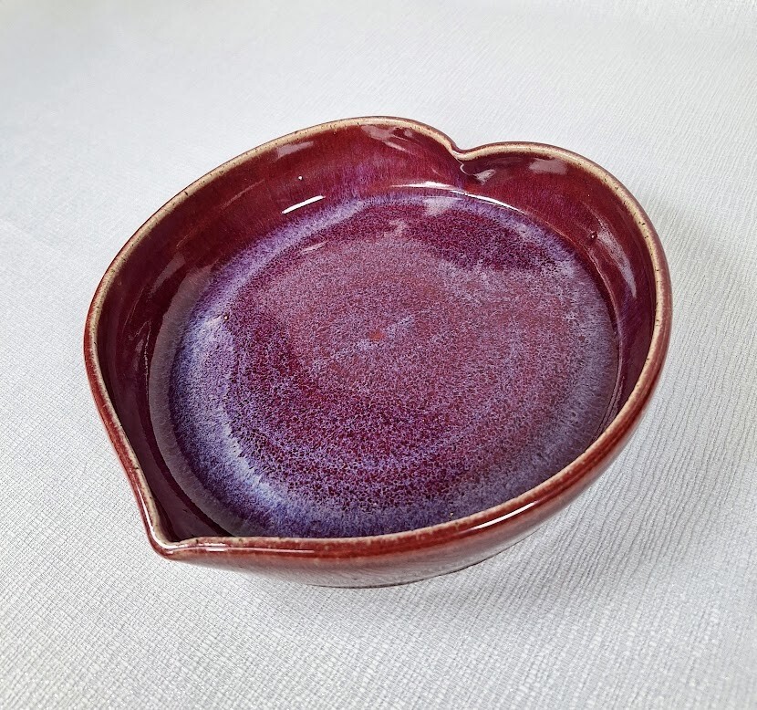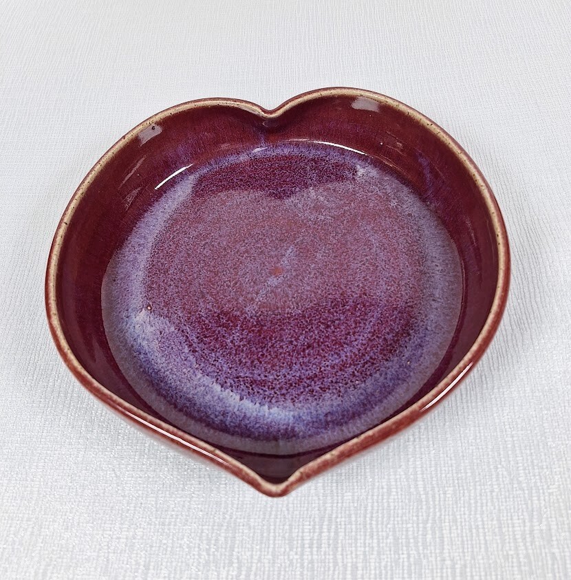 This adorable heart-shaped dish is the perfect blend of rustic charm and elegance. The rich plum glaze with soft blue accents makes it a standout piece—ideal for serving desserts or small baked treats. Handmade details give it character, and the slight imperfections just add to its authenticity. A lovely, thoughtful gift for Valentine’s Day or any special occasion!
