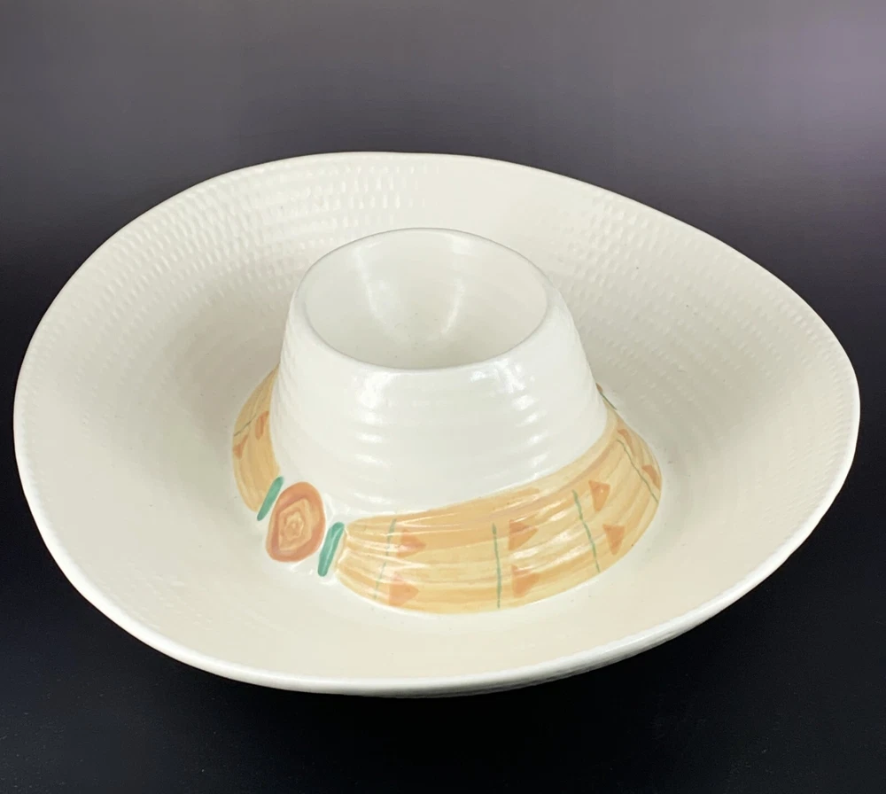 This fun and colorful ceramic sombrero dish is perfect for parties! The attached dip bowl is super convenient, and the vintage southwestern design adds a playful touch. Sturdy, spacious, and comes with its original box—great for chips, salsa, or any snack. A unique and festive serving piece!