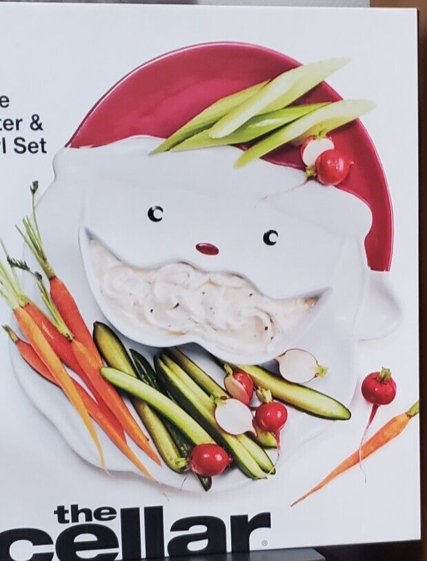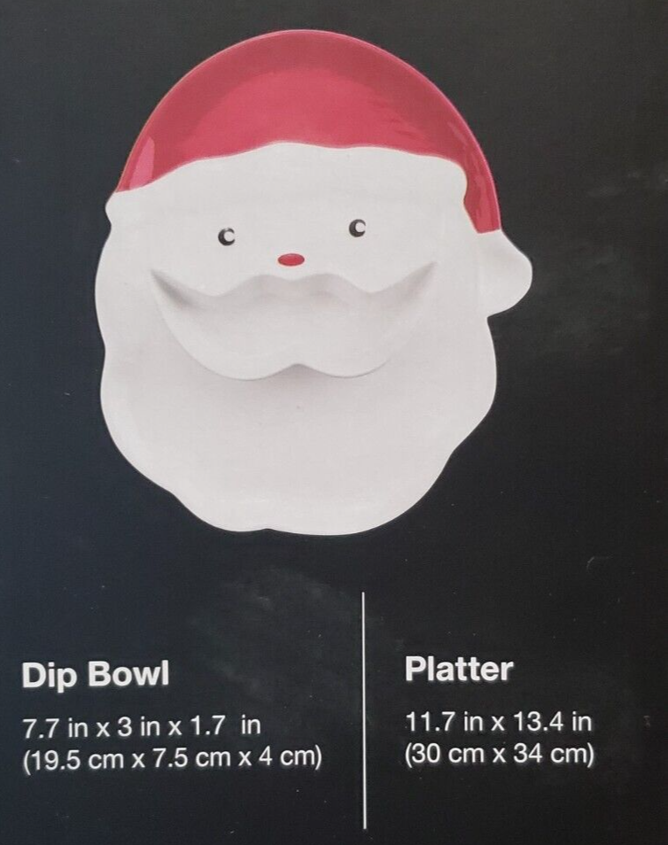 New Old Stock has spots on red see picture Items are from store closeouts, outlets, or store returns. THE CELLAR Serve 2-Pc Set Holiday Santa Chip & Dip Serving Platter Macy's A2 MSRP $67.00 1) Dip bowl 7.7"x3"x1.7" 1) Platter 11.7"x13.4" PLEASE READ CAREFULLY. Item is eligible for a 30-day return policy. Buyer pays return shipping. Item must be returned in the EXACT same condition as purchased to receive a 100% full refund less shipping. If item is opened, used, altered, or had any of the original packaging removed or damaged, only a partial refund will be issued to match the new sellable condition of the item.