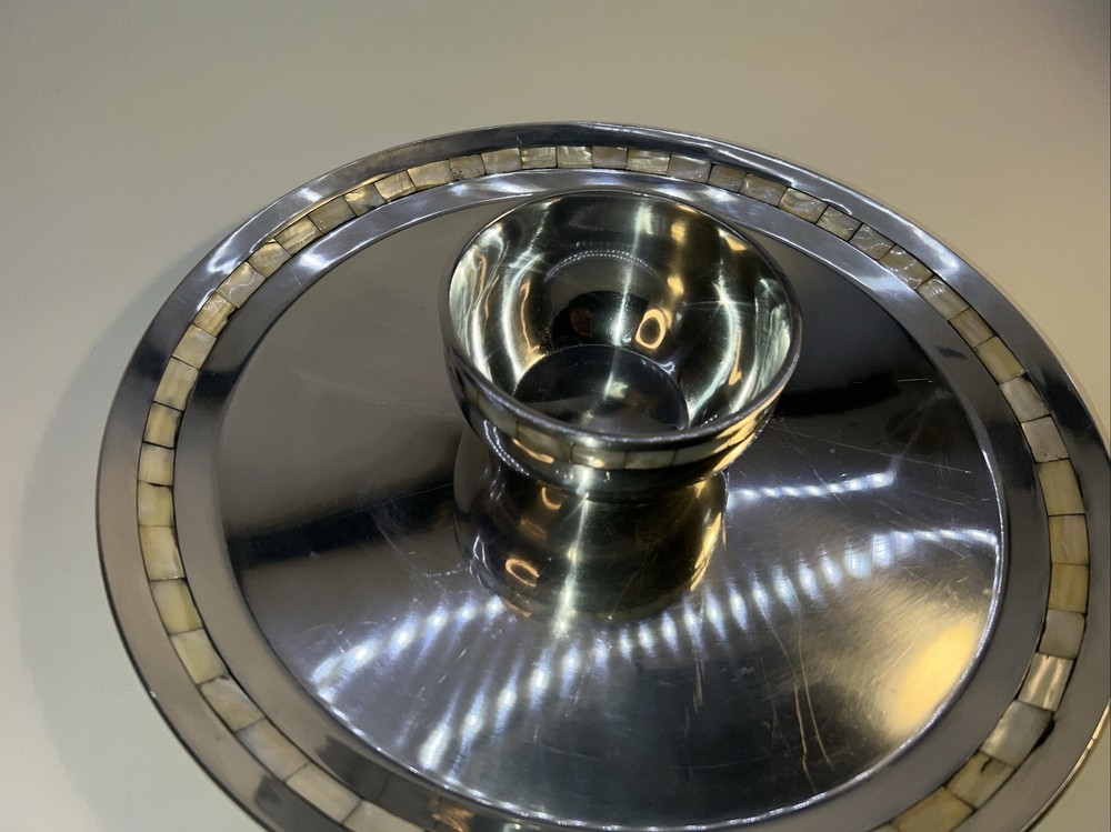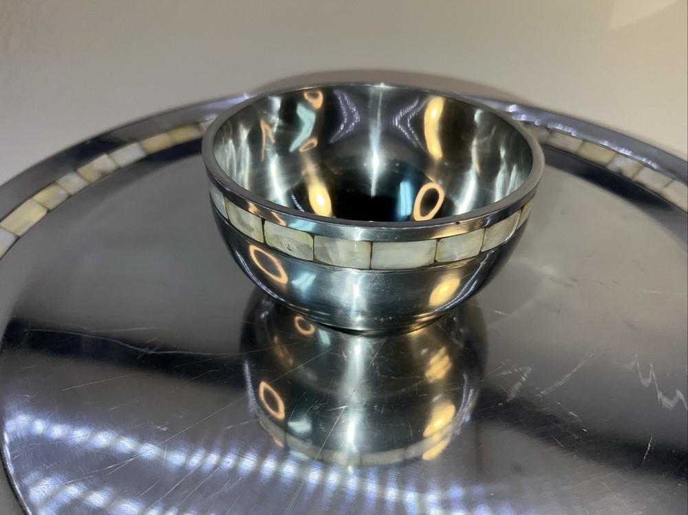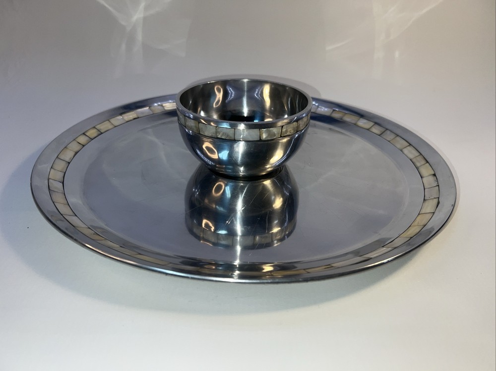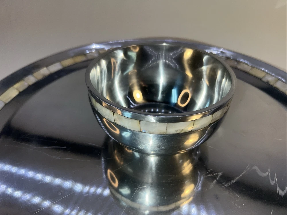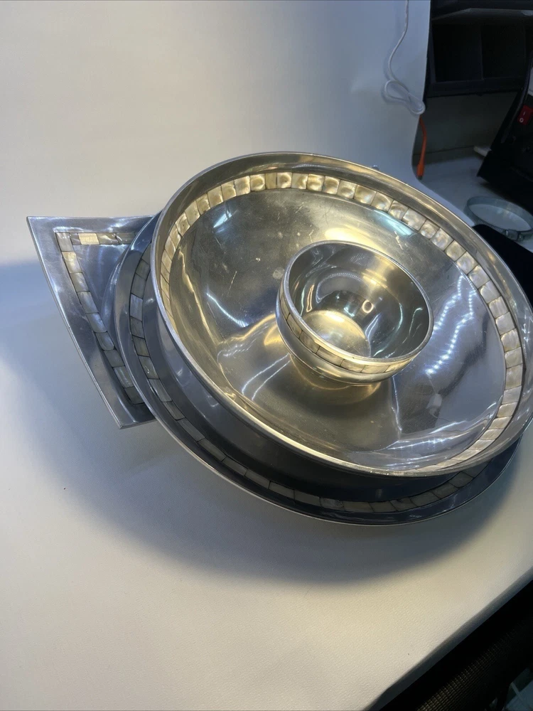 TOWLE Silversmiths Chip & Dip tray Set Mother of Pearl Large Serving Tray . Condition is Used. Shipped with USPS Priority Mail.