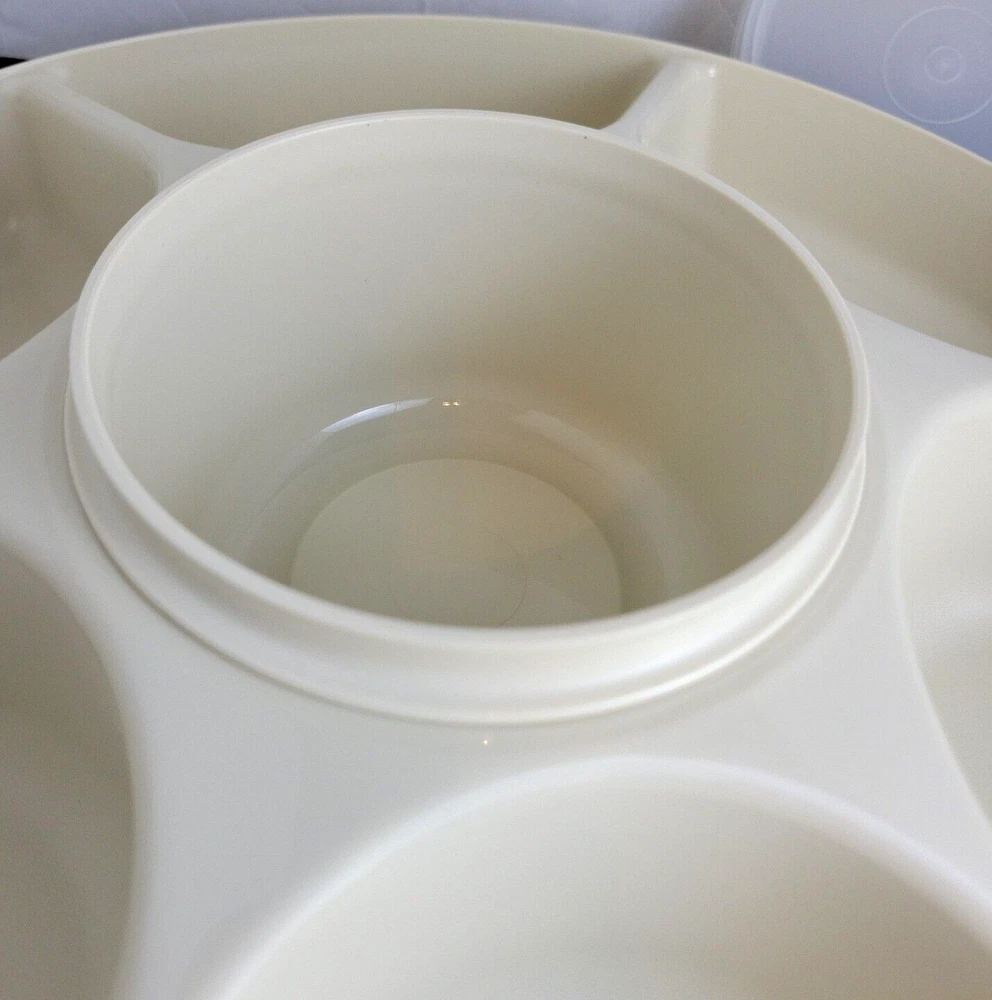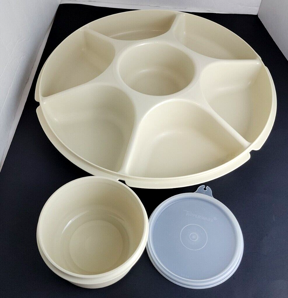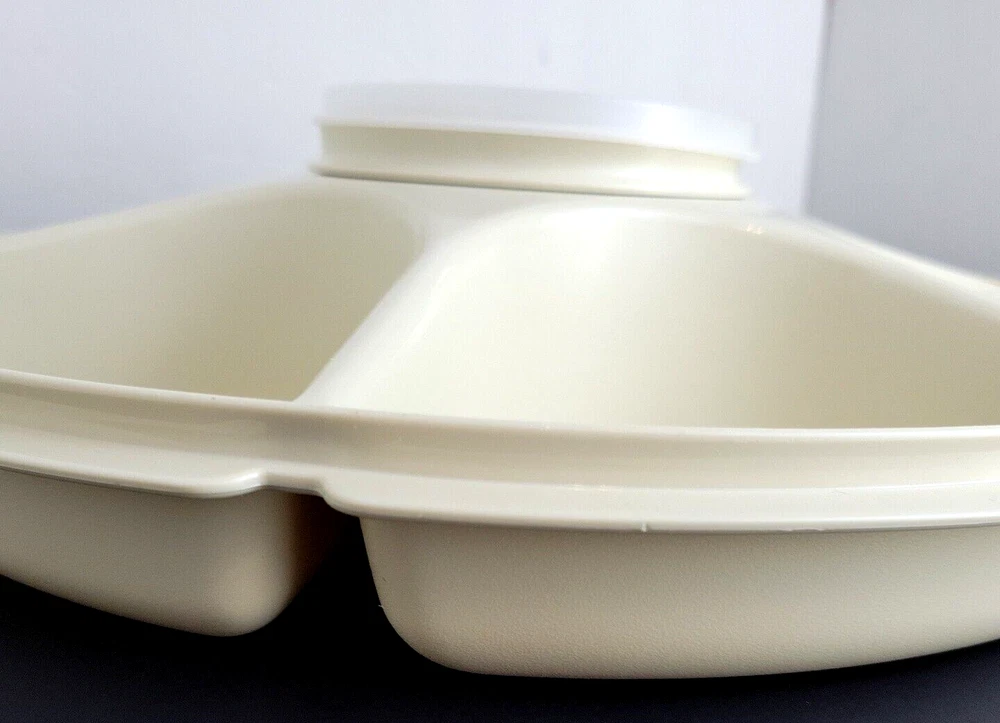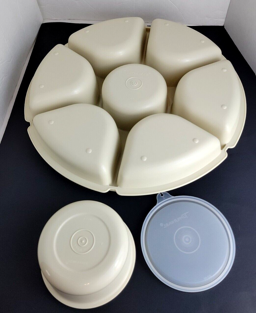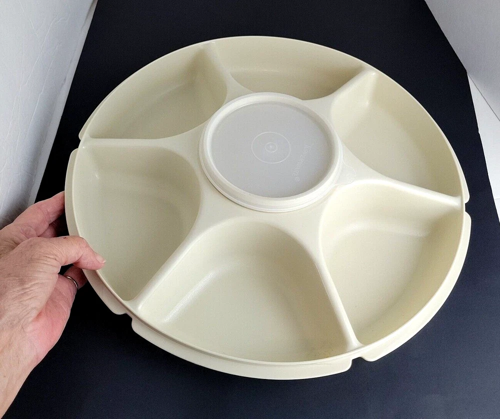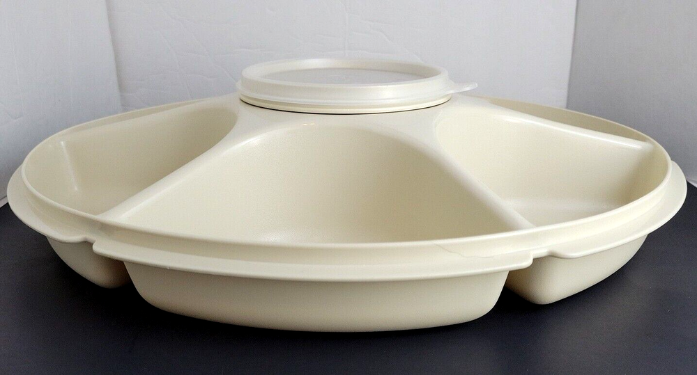 I have for sale a TUPPERWARE® Divided Veggie/Meat/Cheese Serving Tray with Dip Bowl & Lid (3 pieces). It is barely used, measures 14” wide x 3.25" tall, weighs 15.5 ounces, is made of plastic, and is in excellent condition (no cover lid). It will be shipped the least expensive way possible.