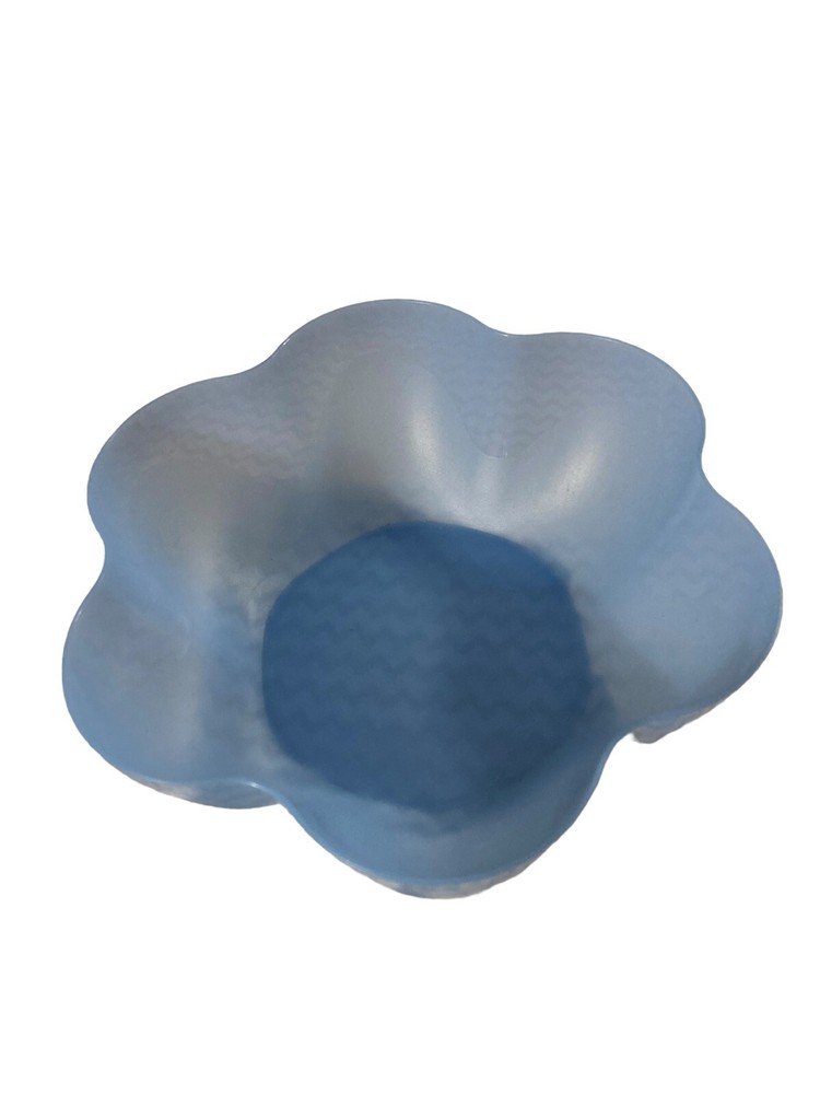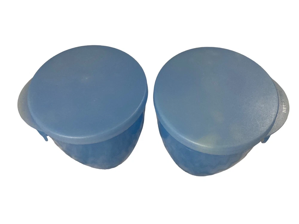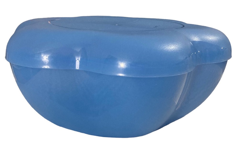 This Tupperware set includes two Large Chip N Dip Bowls in the shape of a Daisy. The capacity of each bowl is 5.6 L and they come in a beautiful light blue color. The bowls are made of durable plastic and are perfect for serving chips, dips, salads, and other snacks at parties and gatherings. The Tupperware bowls are in good condition and have not been modified. This set is a great addition to any kitchen and perfect for those who love to entertain.