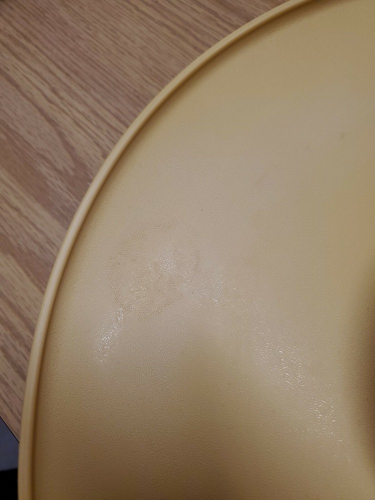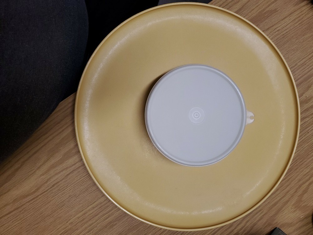 TUPPERWARE vintage gold Dip-N-serve chip/veggie tray 3 pc set w/ removable dish. Condition is Used. There is a light stain on the platter. See pic. Shipped with USPS Priority Mail.